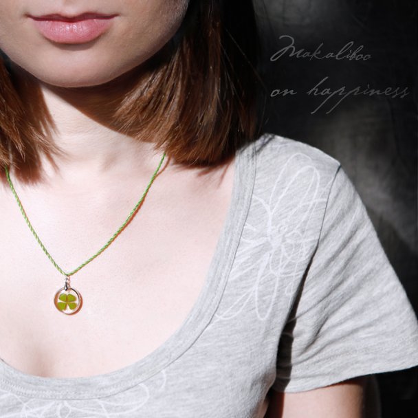 Prosty, delikatny, kobiecy, wiosenny naszyjnik z prawdziwą czterolistną koniczynką - Na szczęście. Naszyjnik ma średnicę 18 mm. Każdy egzemplarz jest niepowtarzalny - czterolistne koniczynki pochodzą ze specjalnej uprawy. Koniczynka zawieszona jest na dopasowanym kolorystycznie woskowanym bawełnianym sznureczku. Zaimpregnowany woskiem sznureczek prezentuje się elegancko i dłużej zachowuje świeży wygląd. Zapinany jest na guziczek z pentelką. Długość sznureczka 46 cm. średnica ok 1.2 mm.