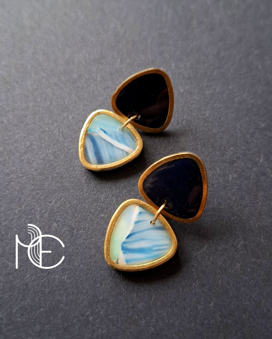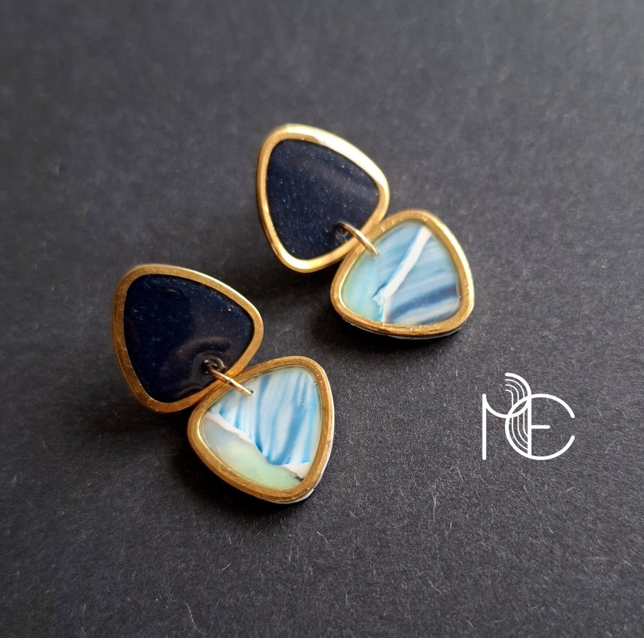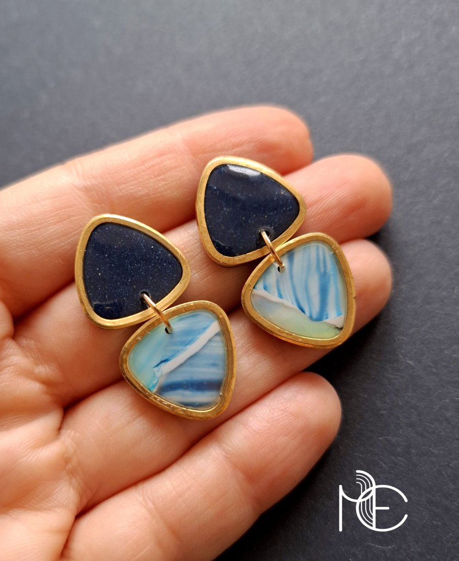 Ozdobne sztyfty wykonane z wysokiej jakości glinki polimerowej w połączeniu z ozdobnymi metalowymi elementami w złotym kolorze. Kolczyki jednostronne ze sztyftami pozłacanymi i nieuczulającymi z zapięciem na klasyczne baranki.