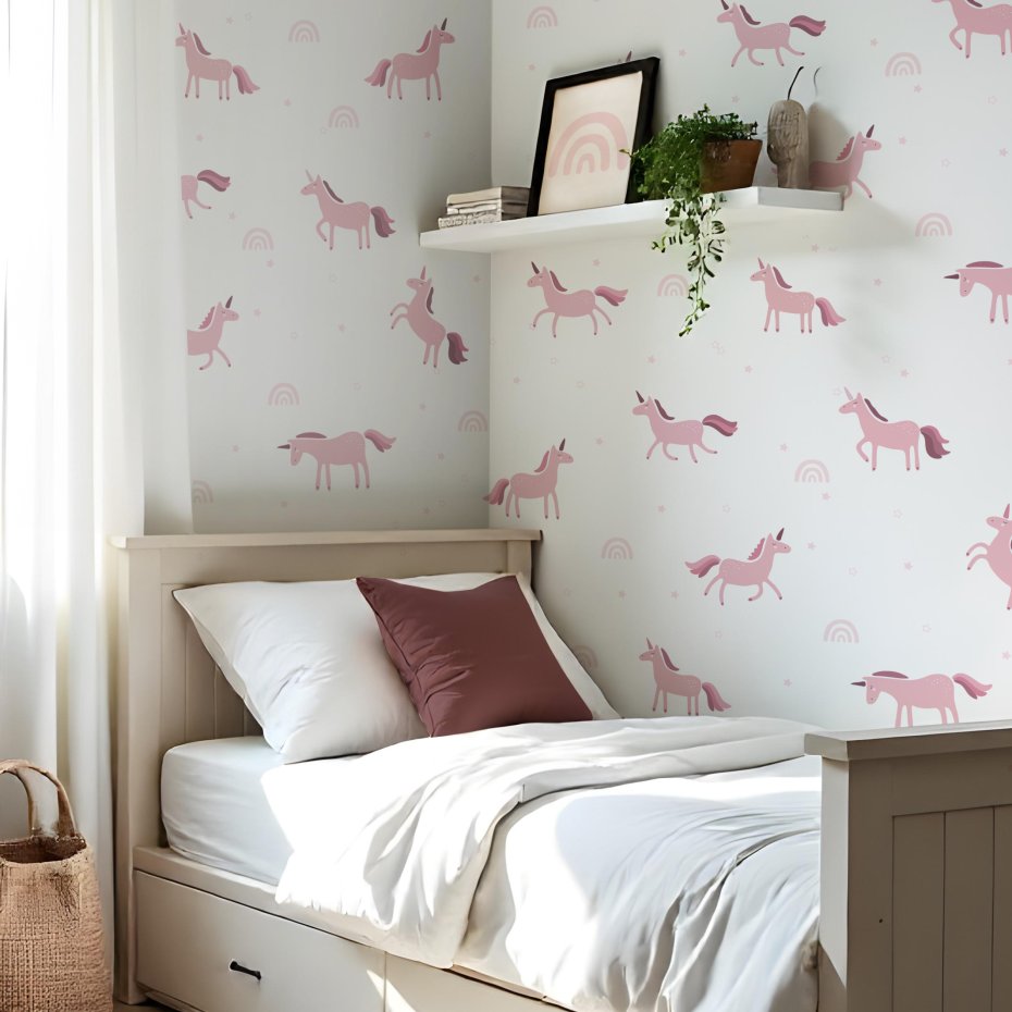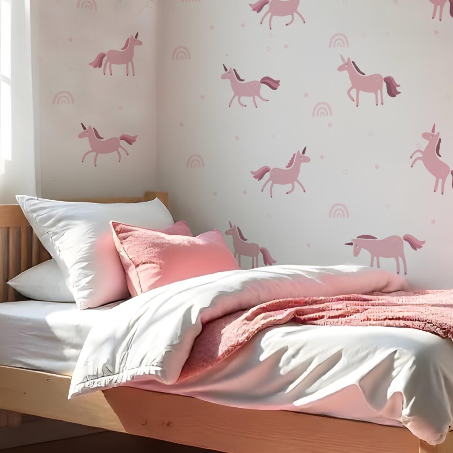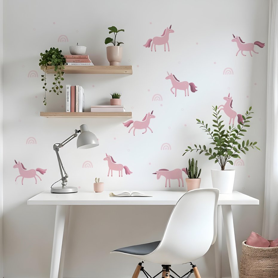 ✨ Dodaj radości i przytulności do pokoju dziecka dzięki naszemu zestawowi Naklejek Ściennych Jednorożce i tęcze w ciepłych, stonowanych odcieniach różu. Idealne do pokoju dziewczynki, bawialni czy sypialni niemowlaka, a także dla wszystkich miłośniczek koni, pegazów i jednorożców ????