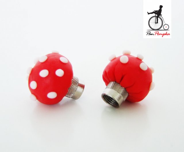 Nakrętki na wentyle od Pana Pompki wspaniałą ozdoba dla Twojego roweru. Dostępny również inne akcesoria do kompletu: pokrowiec na siodełko, koszyk wraz z materiałowym wkładem, osłona tylnego koła, chwyty kierownicy - zobacz całą kolekcję.Do wyboru wentyle typu samochodowego lub zwykłe rowerowe. 2 sztuki w komplecie. Ręcznie wykonane w Polsce. Idealne na prezent dla ukochanej osoby!