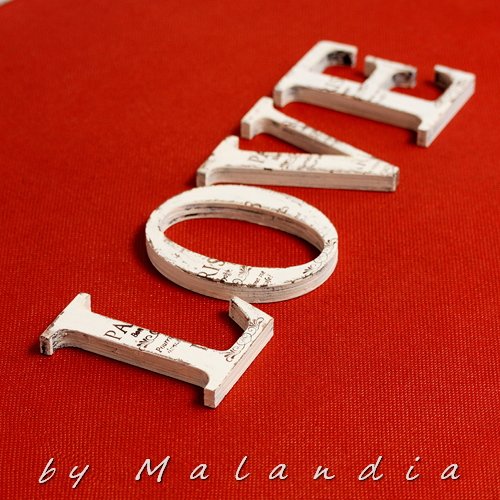 Litery, każda stojąca osobno, malowane ręcznie metodą shabby chic tworzące miłosne wyznanie Love.
