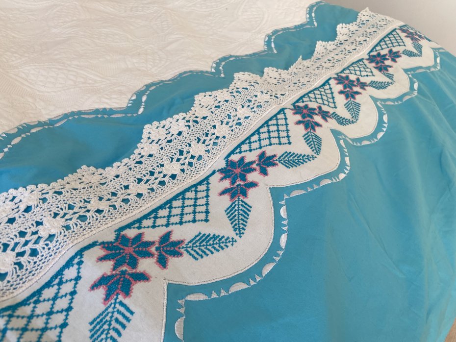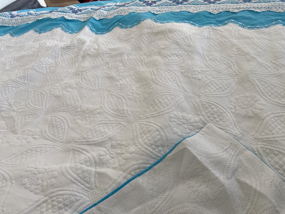 Ogromna turecka narzuta bawełniana, ręcznie tkane elementy, koronki, wyszycia, setki godzin ręcznej pracy. Zestaw pościeli z tą narzutą to koszt ponad 5000zł.