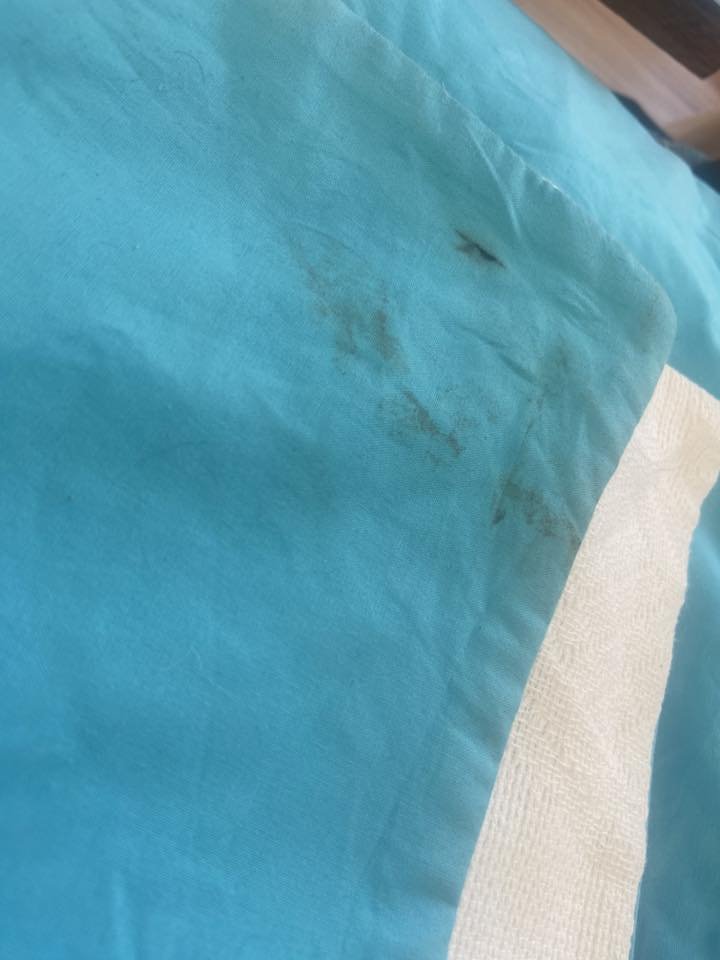 Narzuta ma małe plamki do doprania, szczególnie na jednym rogu, ale to wodać, że to przybrudzenia któe bez trudu zejdą