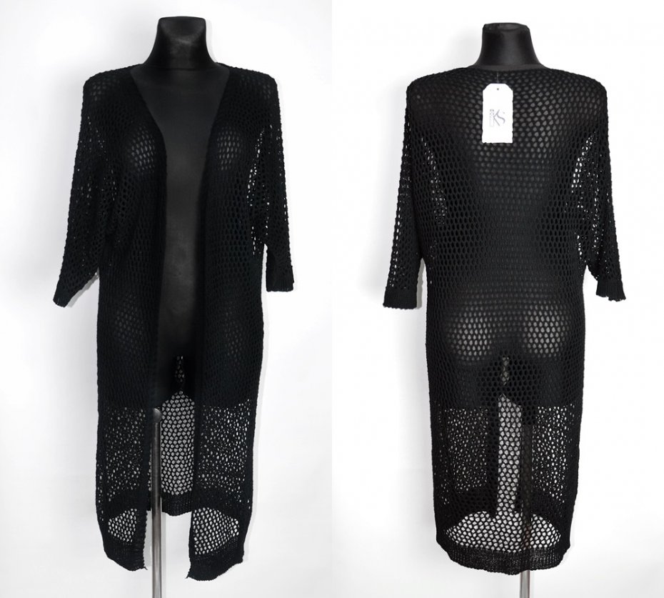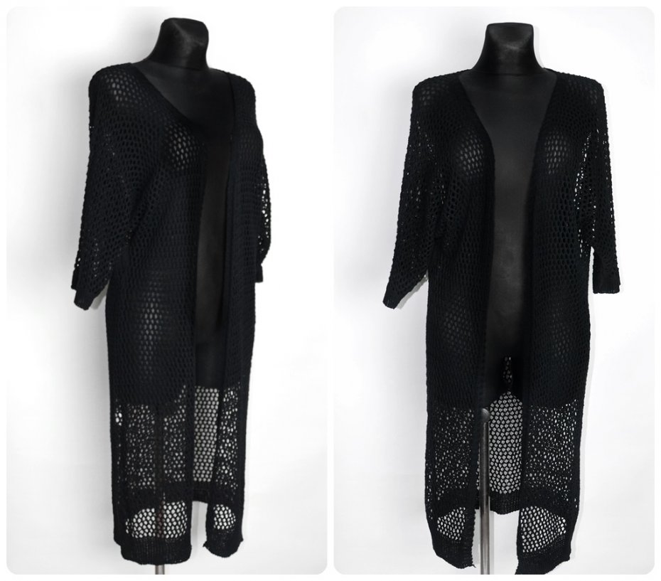 Czarna. Krój prosty, bez zapięcia. Rękawki 3/4.