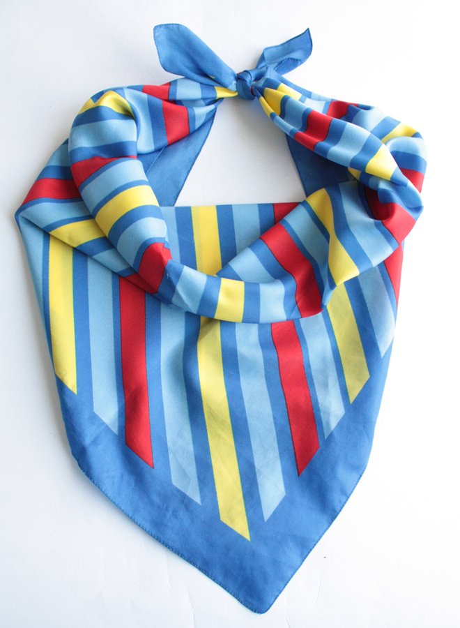 Efektowna chusta w pasy w żywych kolorach.