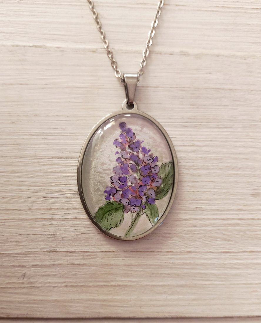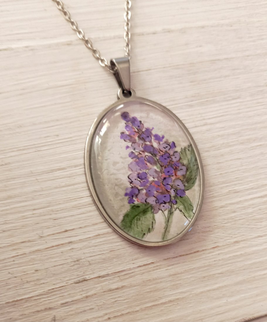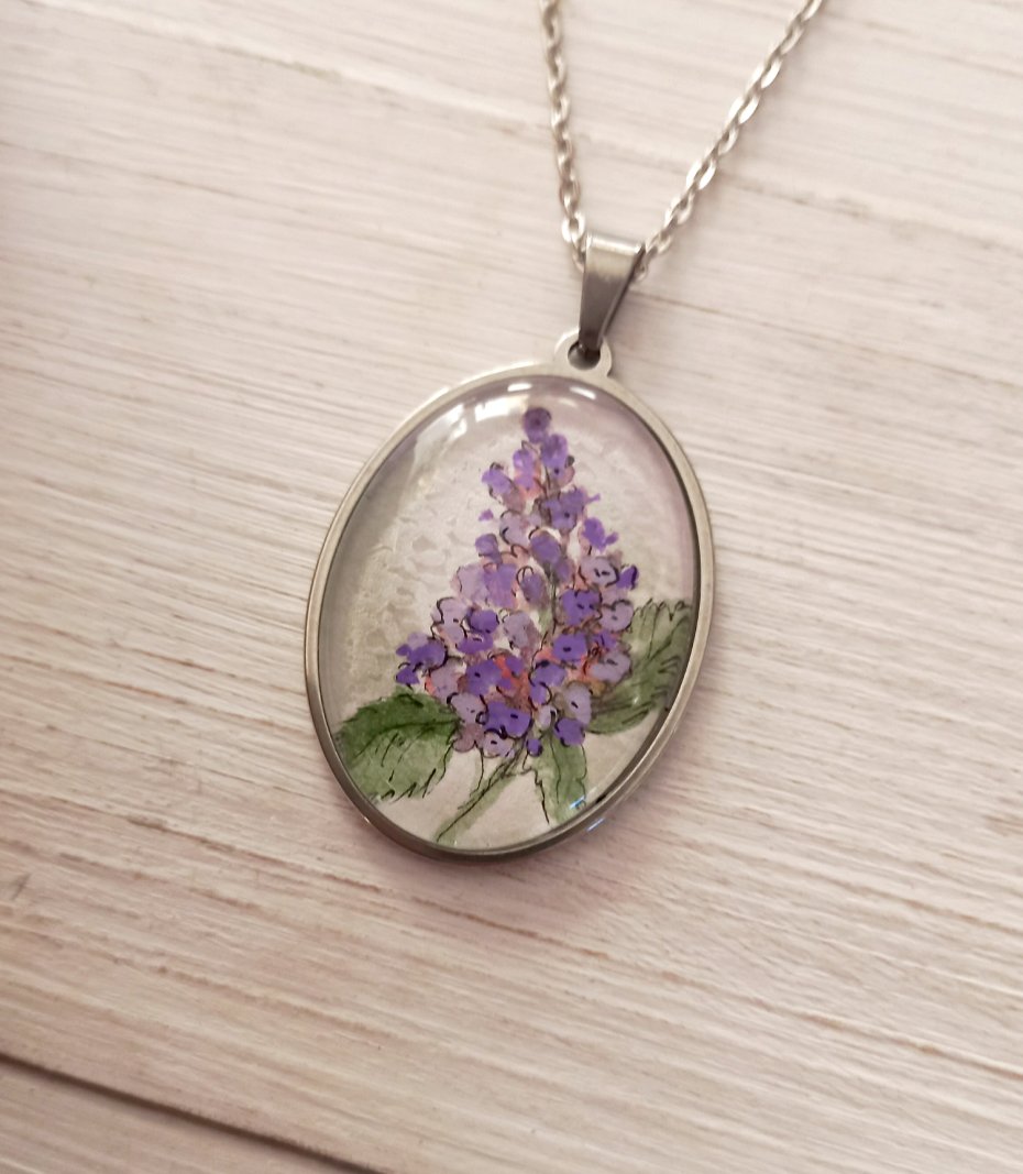 Ręcznie malowany naszyjnik z miniaturową akwarelą... prawdziwe cudenko