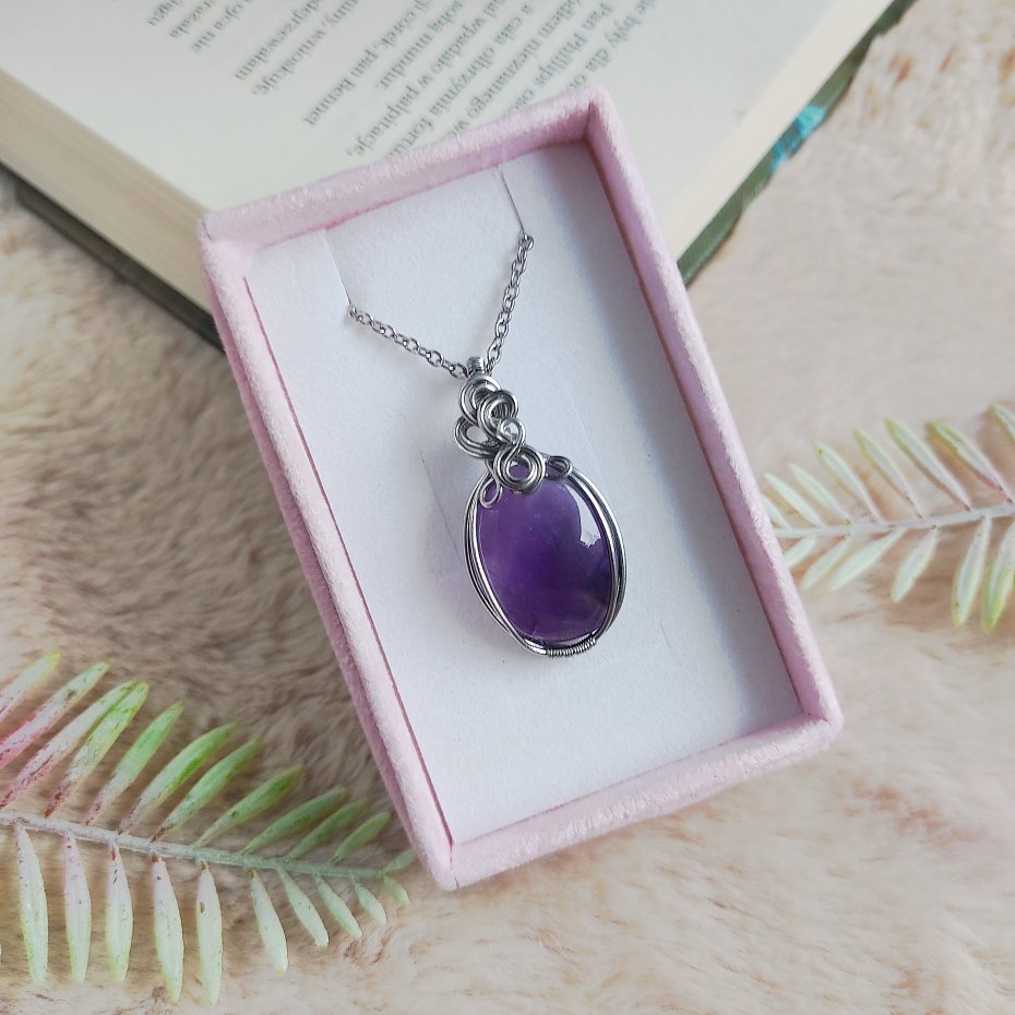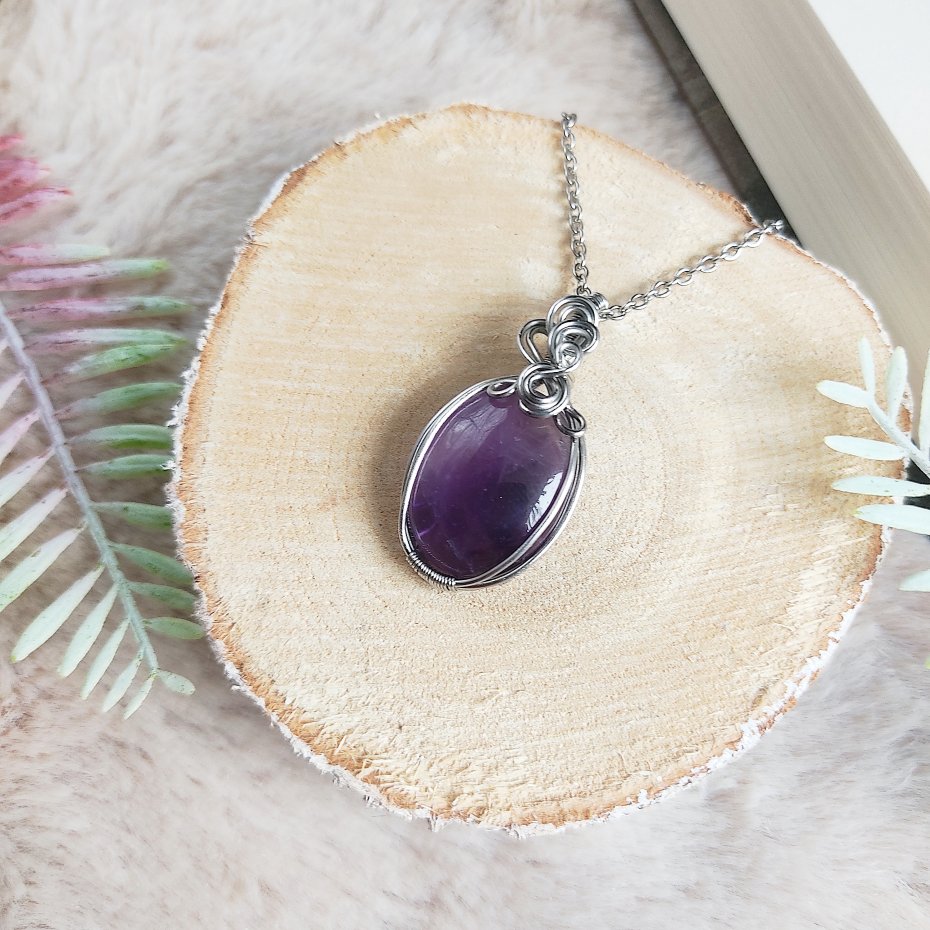 Tagi: #naszyjnik z ametystem, #naszyjnik z wisiorem, #pomysł na prezent, #wire wrapping