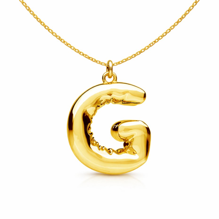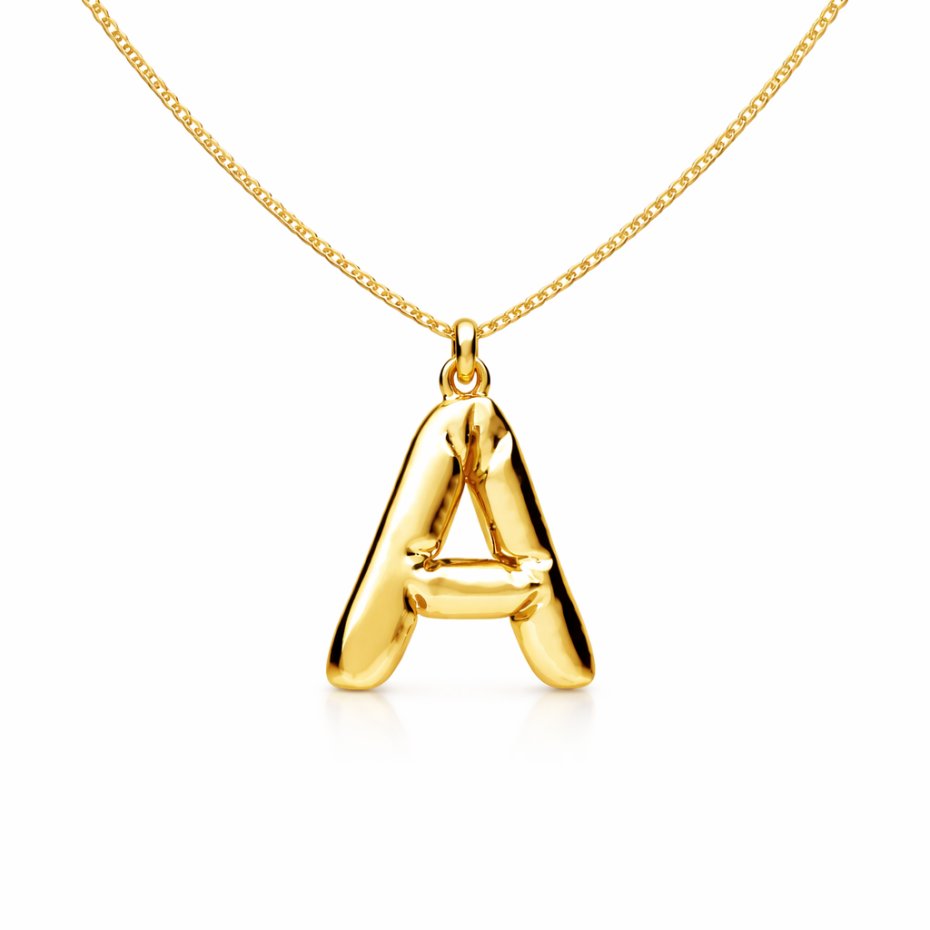Naszyjnik z zawieszką w kształcie balonowej literki. Wykonany ze srebra pr.925 pokrytego 24K złotem. Dostępne są wszystkie literki ( bez polskich znaków; brak literki Ł). Wybraną literkę należy wpisać w komentarzu do zamówienia.