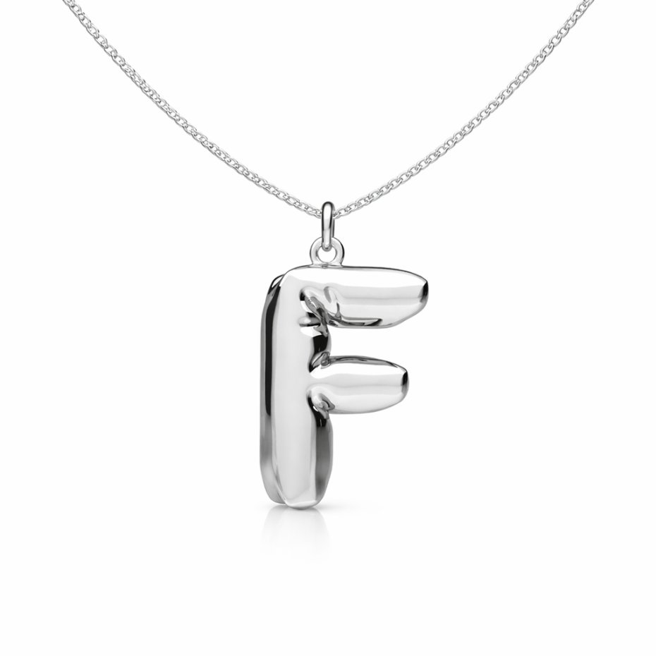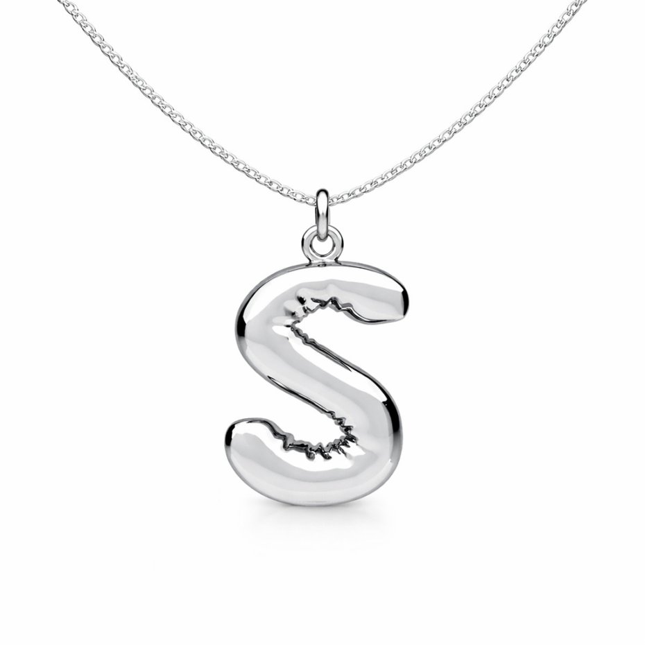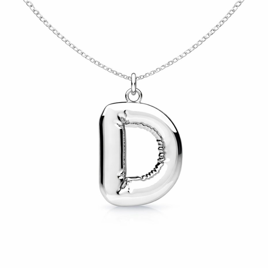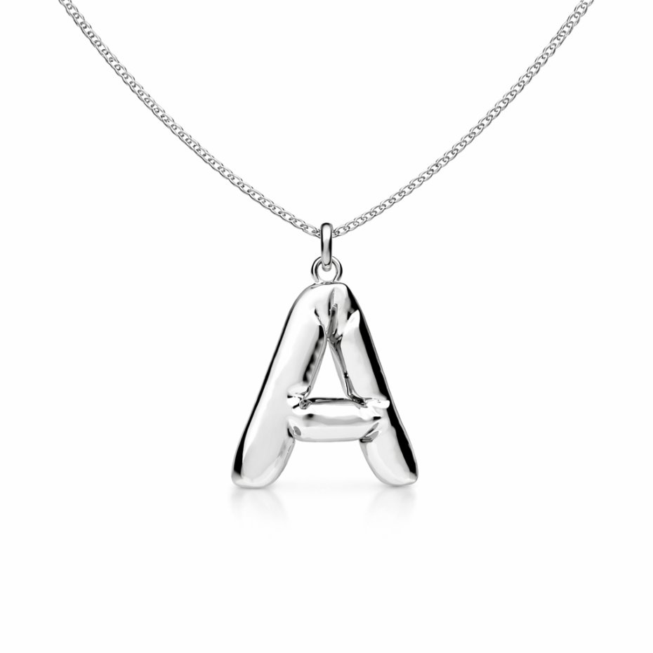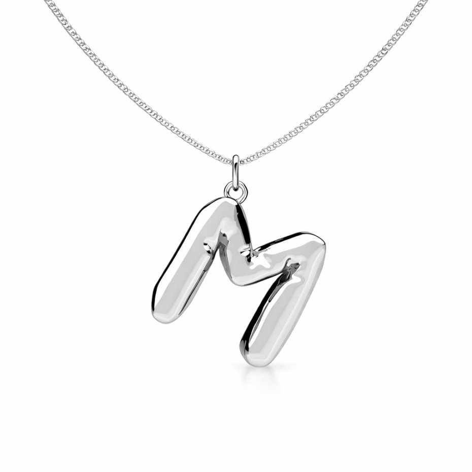 Naszyjnik z zawieszką w kształcie balonowej literki. Wykonany ze srebra pr.925. Dostępne są wszystkie literki ( bez polskich znaków; brak literki Ł). Wybraną literkę należy wpisać w komentarzu do zamówienia.