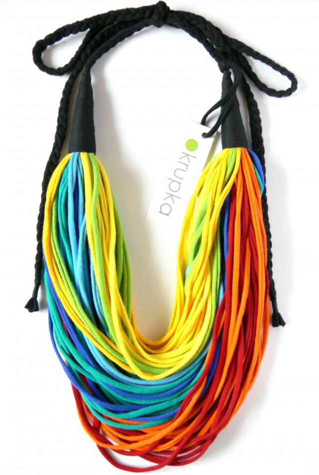 Wyjątkowy bawełniany naszyjnik wykonany w duchu upcyclingu. Upcycling zakłada wykorzystanie ponowne materiałów oraz przedmiotów i nadanie im drugiego życia. Do produkcji naszyjników wykorzystuję ponownie materiały pochodzące z resztek produkcji ubrań, materiały z second-handów lub materiały od znajomych :) Staram się, by każdy naszyjnik był wykonany z materiałów jak najlepszej jakości. Moje naszyjniki pięknie prezentują się w towarzystwie prostych ubrań, są kolorowe i ożywiają każdą kreację.