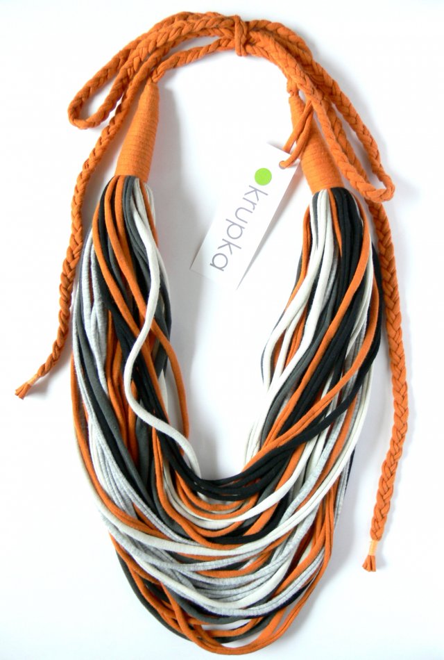 Naszyjnik jest wykonany ze 100% bawełny, można prać go w pralce razem z kolorową odzieżą na 40 stopni. Wszystkie elementy są ręcznie szyte. Regulowana długość naszyjnika.