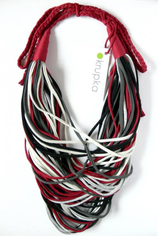 Wyjątkowy bawełniany naszyjnik wykonany w duchu upcyclingu. Upcycling zakłada wykorzystanie ponowne materiałów oraz przedmiotów i nadanie im drugiego życia. Do produkcji naszyjników wykorzystuję ponownie materiały pochodzące z resztek produkcji ubrań, materiały z second-handów lub materiały od znajomych :) Staram się, by każdy naszyjnik był wykonany z materiałów jak najlepszej jakości. Moje naszyjniki pięknie prezentują się w towarzystwie prostych ubrań, są kolorowe i ożywiają każdą kreację.