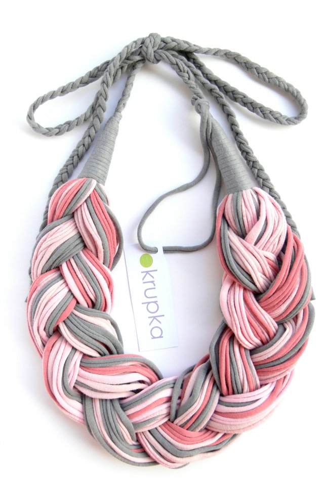 Naszyjnik jest wykonany ze 100% bawełny, należy prać go ręcznie w 40 stopniach, nie prasować. Wszystkie elementy są ręcznie szyte. Regulowana długość naszyjnika.