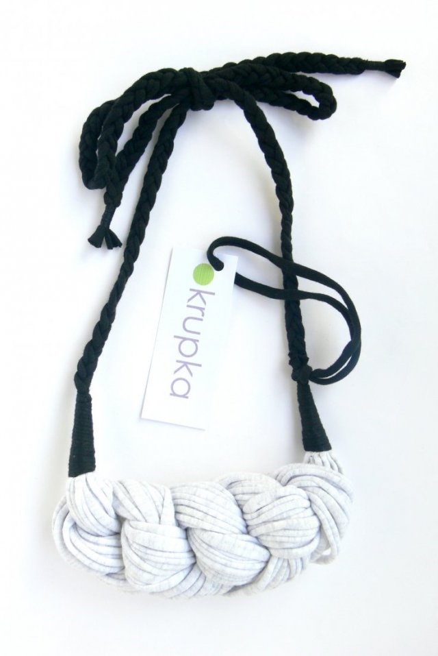 Naszyjnik jest wykonany ze 100% bawełny, należy prać go ręcznie w 40 stopniach, nie prasować. Wszystkie elementy są ręcznie szyte. Regulowana długość naszyjnika.