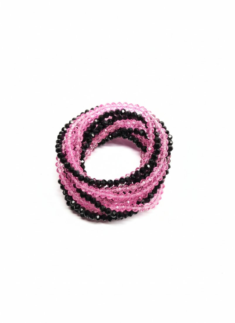 Wyjątkowy naszyjnik, który łączy nowoczesny design z maksymalną wygodą. Ten model składa się z dwóch długich sznurów drobnych paciorków w kontrastujących kolorach - głębokiej czerni oraz subtelnego, transparentnego różu.