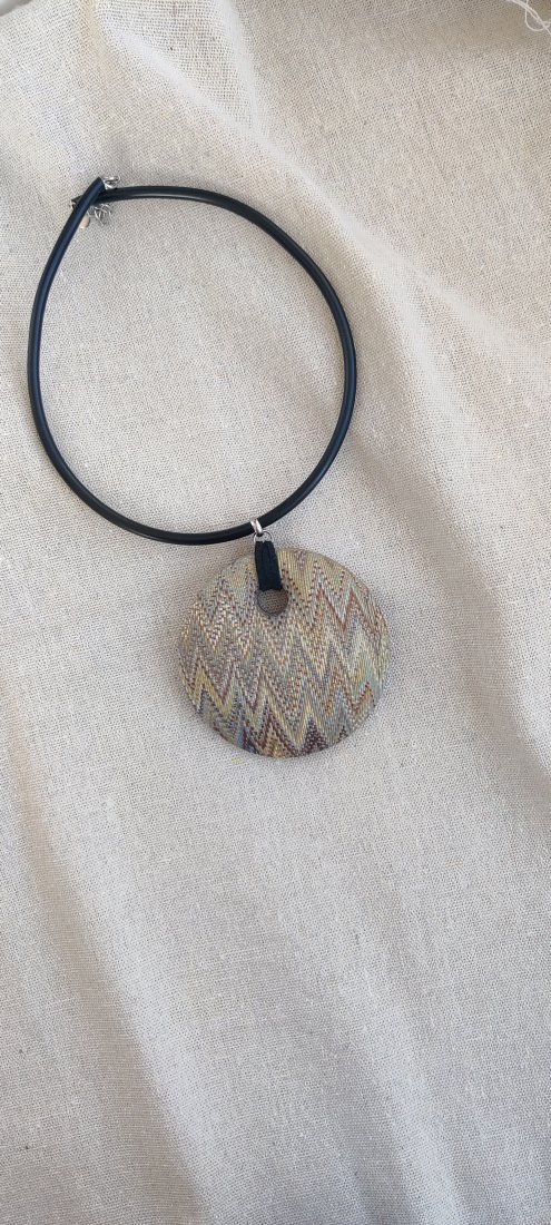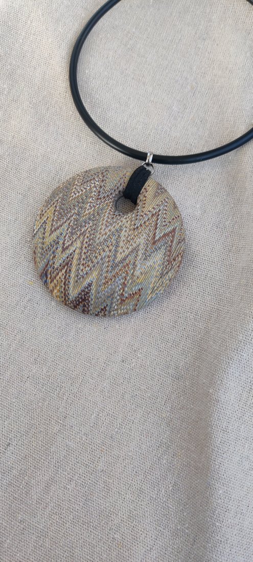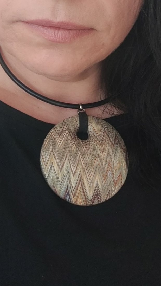 ​Ręcznie wykonany wisior z geometrycznym wzorem. To nie jest nadruk – to precyzyjna praca z gliną polimerową.
