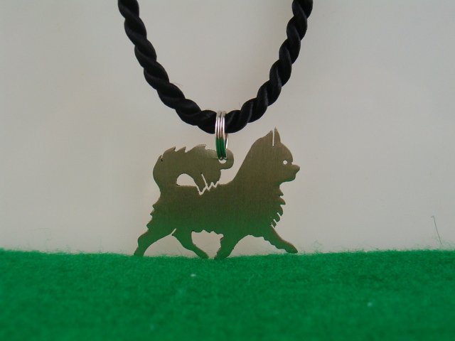 Wisiorek przedstawiający psa jest wycięty ręcznie w alpace i zmatowiony. Zawieszony na czarnym jedwabnym sznurku o długości 60 cm. W takiej biżuterii będziesz modna,oryginalna i rozpoznawalna a Twój pupil będzie zawsze z Tobą.