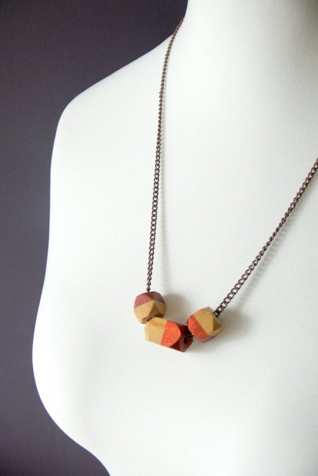 Wyjątkowy drewniany naszyjnik wykonany w duchu upcyclingu. Upcycling zakłada wykorzystanie ponowne materiałów oraz przedmiotów i nadanie im drugiego życia. Do produkcji naszyjnika wykorzystałam ponownie materiały pochodzące z resztek drewna. Staram się, by każdy naszyjnik był wykonany z materiałów jak najlepszej jakości. Moje naszyjniki pięknie prezentują się w towarzystwie prostych ubrań, są kolorowe i ożywiają każdą kreację.