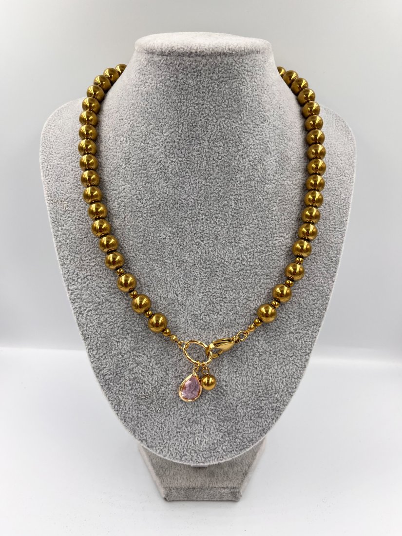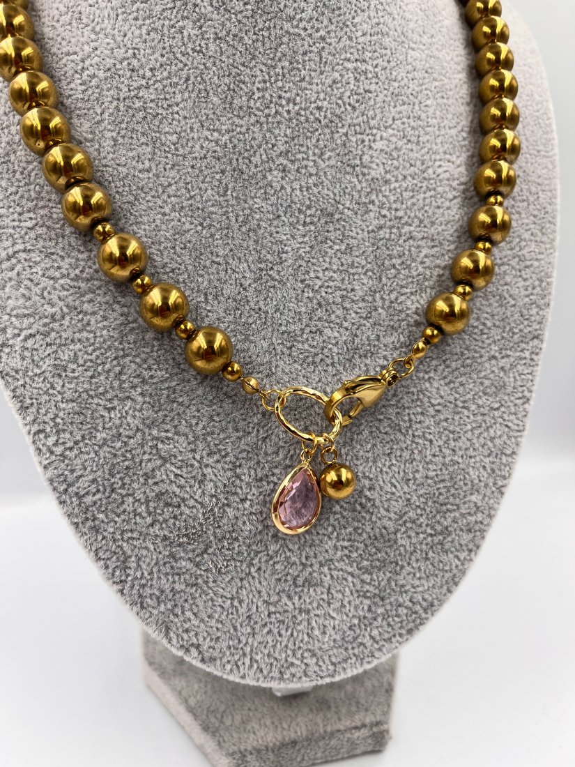 Przepiękny i oryginalny naszyjnik z hematytu z ozdobnym zapięciem i zawieszkami.