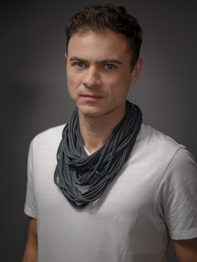 Niezwykle oryginalny, designerski naszyjnik - szal, wykonany z pasów dzianiny w kolorze szarego melanżu. Można go nosić jak szalik lub używać jako element stylizacji. Możliwość zamówienia naszyjnika w innym kolorze. Proszę o wcześniejszy kontakt.