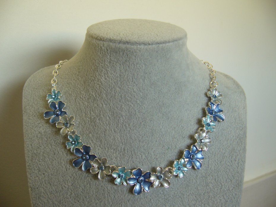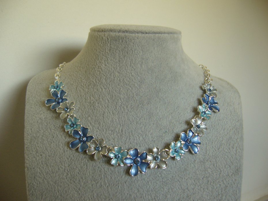 POSREBRZANY NASZYJNIK EMALIOWANE KWIATKI