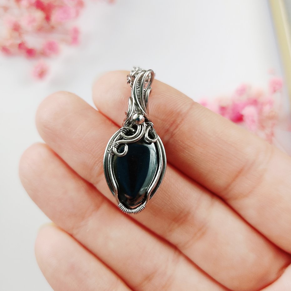 Naszyjnik z hematytem w kolorze srebrnym to wyjątkowa propozycja dla osób, które szukają eleganckiej biżuterii ze stali chirurgicznej, łączącej trwałość z unikalnym stylem. Wykonany metodą wire wrapping, został starannie opleciony ręcznie, bez użycia lutowania ani kleju. Dzięki temu każdy naszyjnik jest niepowtarzalny i posiada swój indywidualny charakter. Stal chirurgiczna została wybrana ze względu na jej hipoalergiczne właściwości – może być bezpiecznie noszona przez osoby z wrażliwą skórą lub skłonnościami do alergii.