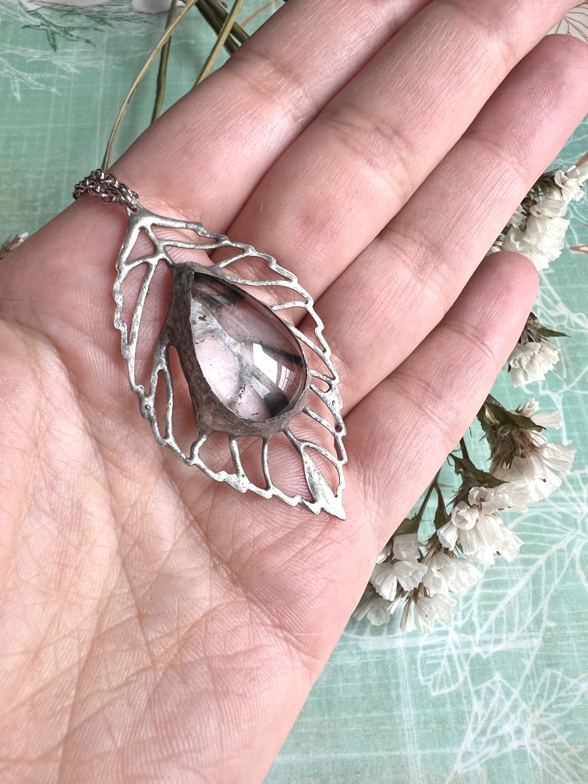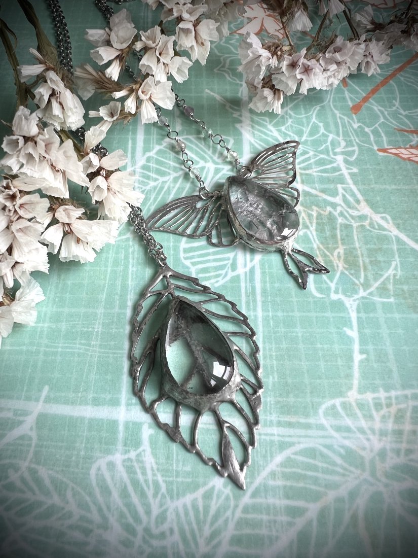 Tagi: #biżuteria fantasy, #kamienie naturalne, #kwarc, #naszyjnik liść