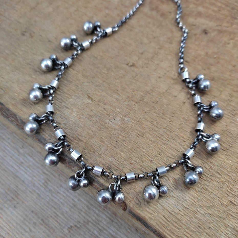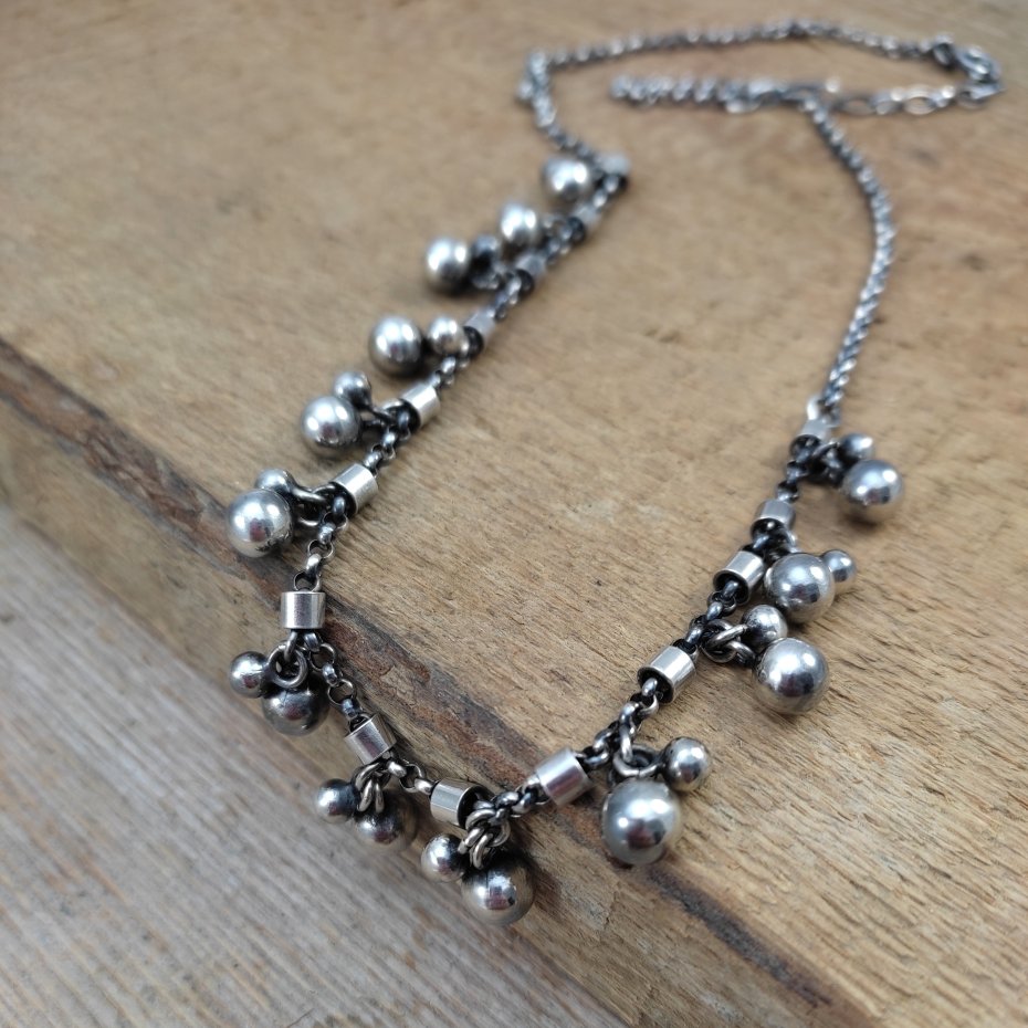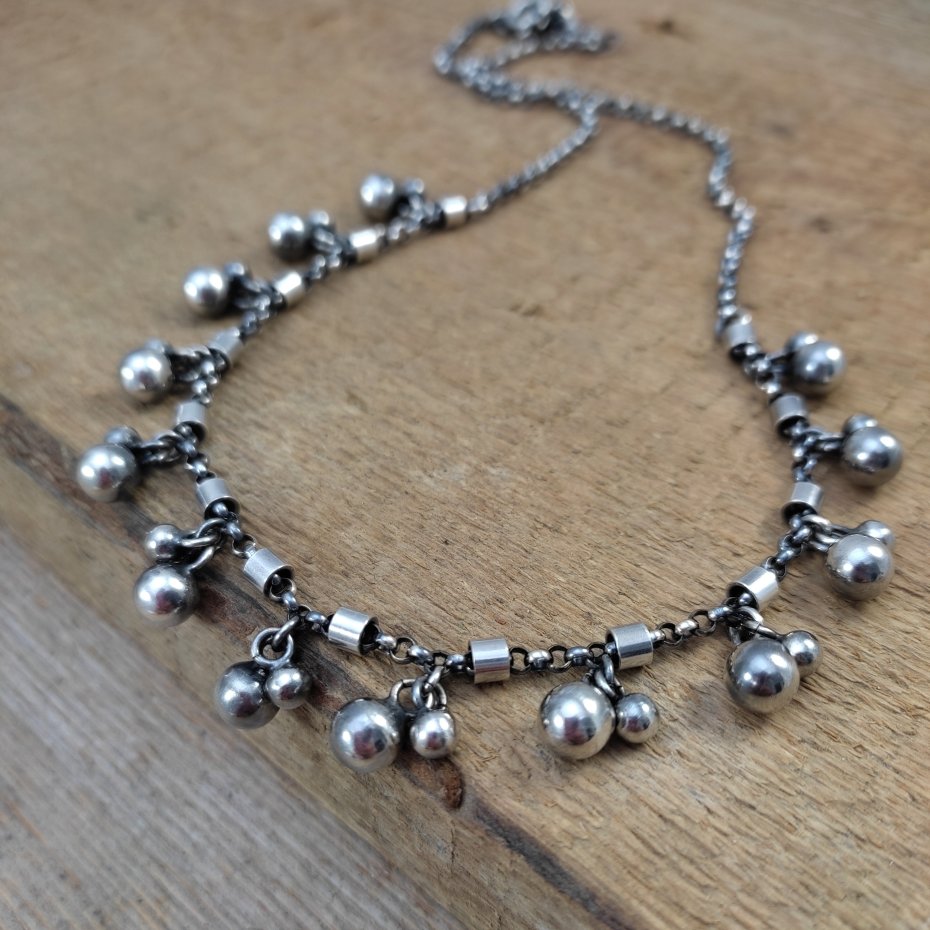 Naszyjnik wykonany ze srebra 925, oksydowanego i wypolerowanego.