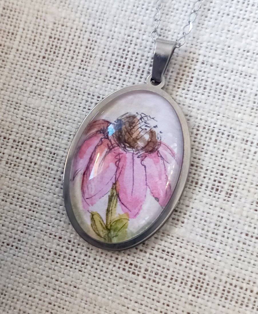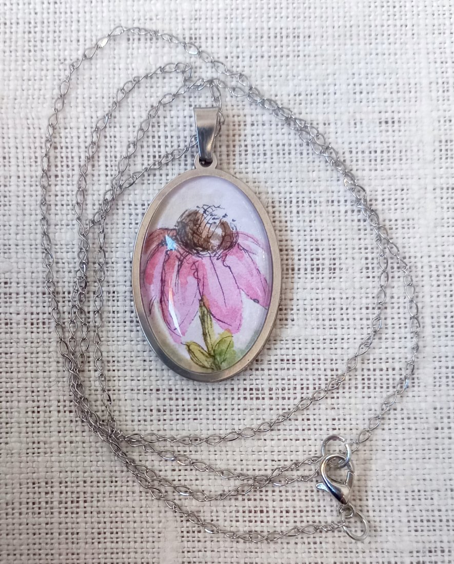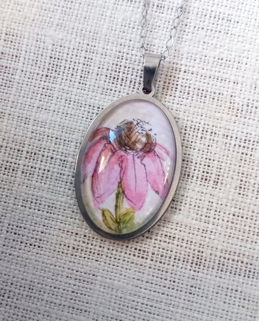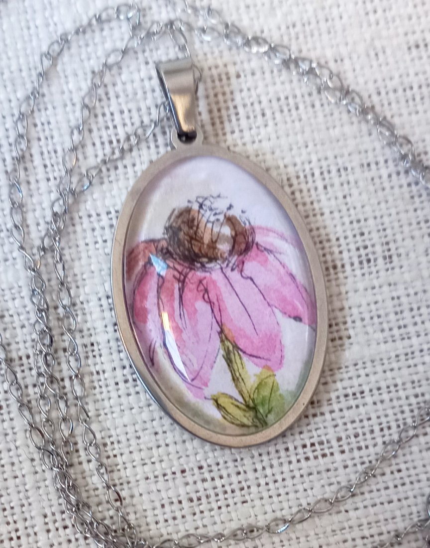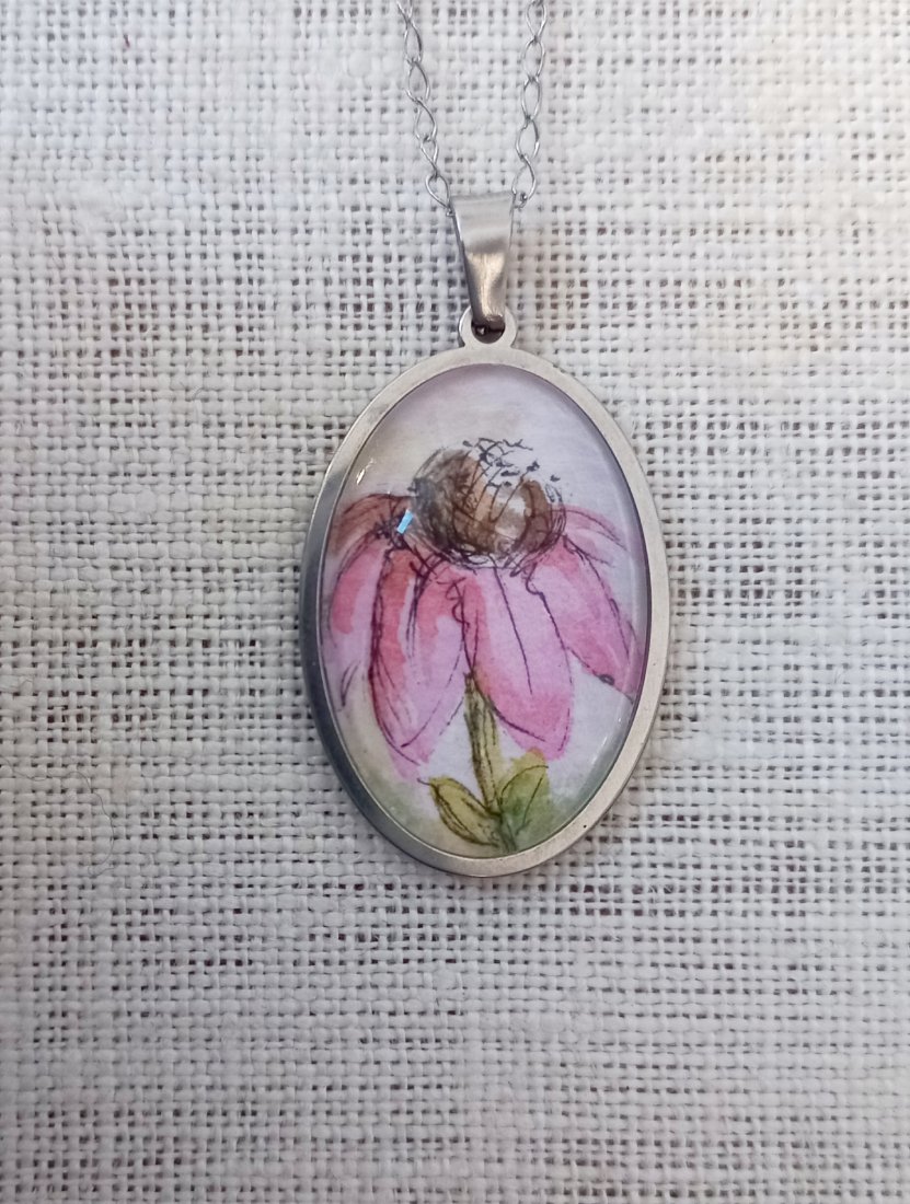 Naszyjnik z ręcznie malowaną mini akwarelą.
