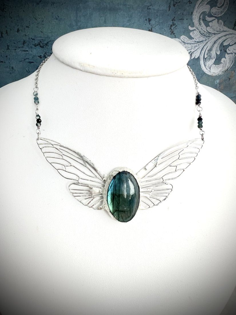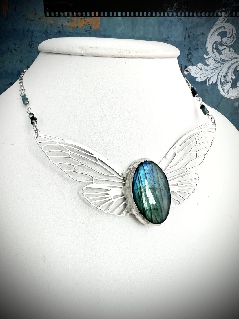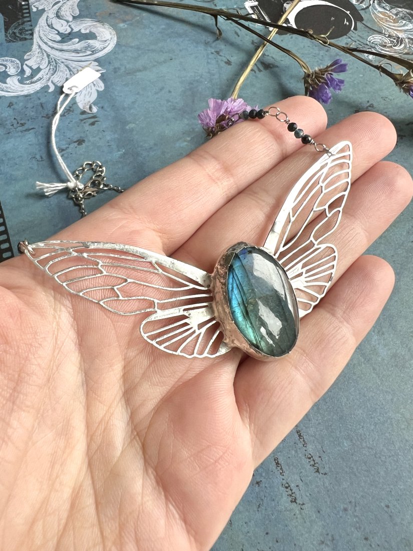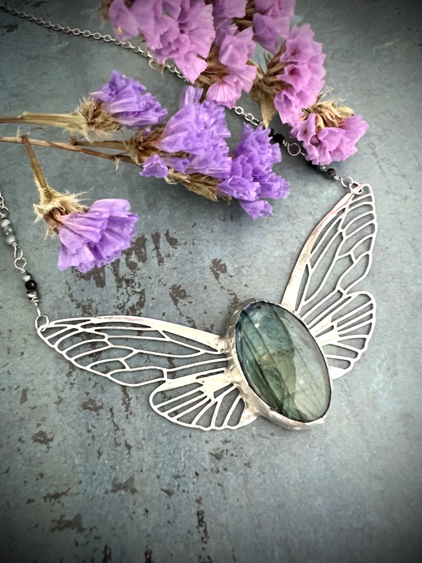 Tagi: #gotycka biżuteria, #kamienie naturalne, #labradoryt, #naszyjnik motyl