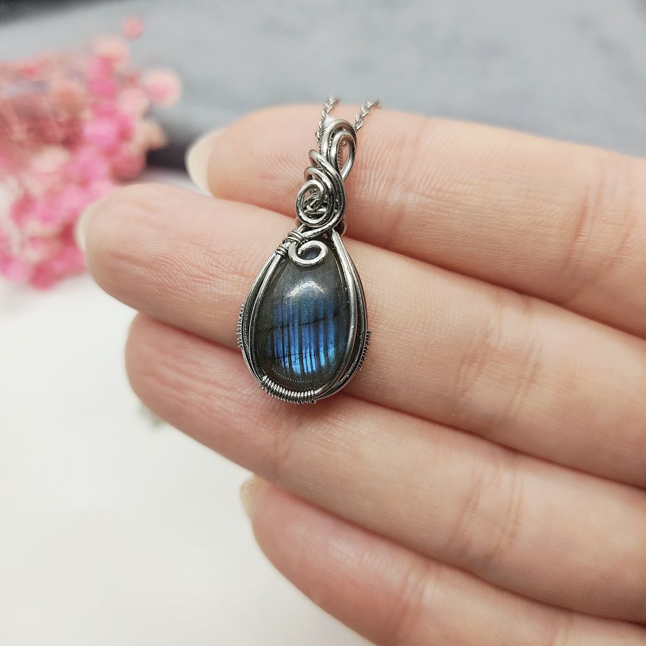 Tagi: #labradoryt biżuteria, #naszyjnik z wisiorem, #pomysł na prezent, #wire wrapping