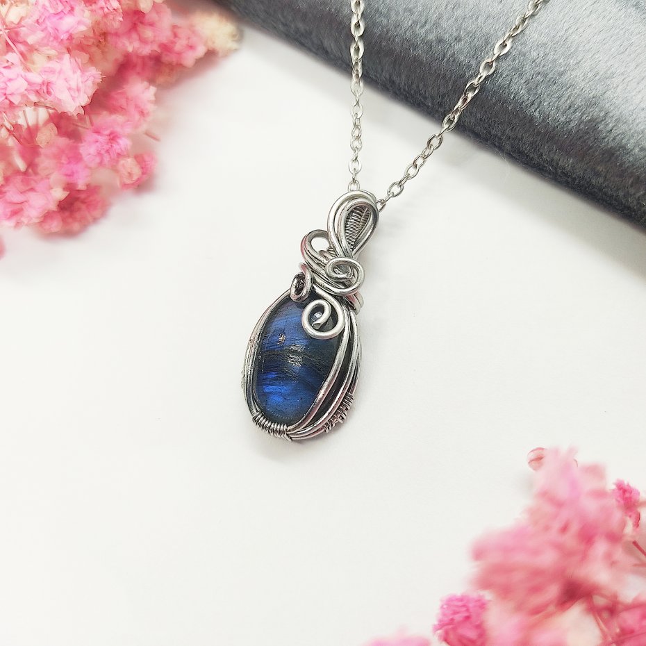 Tagi: #labradoryt biżuteria, #naszyjnik z wisiorem, #pomysł na prezent, #wire wrapping