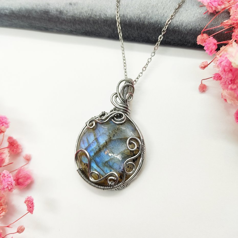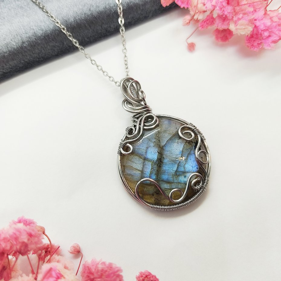 Tagi: #labradoryt biżuteria, #naszyjnik z wisiorem, #pomysł na prezent, #wire wrapping
