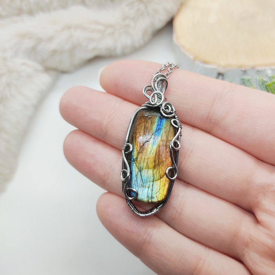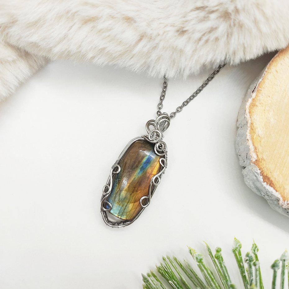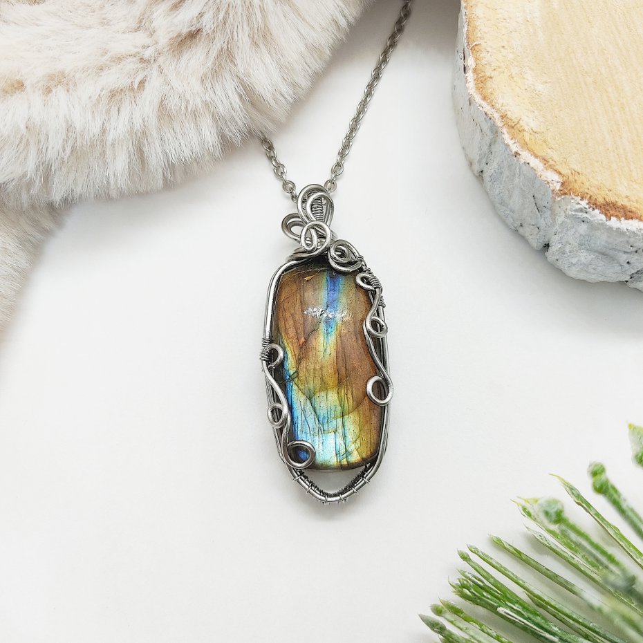 Tagi: #labradoryt biżuteria, #naszyjnik z wisiorem, #pomysł na prezent, #wire wrapping