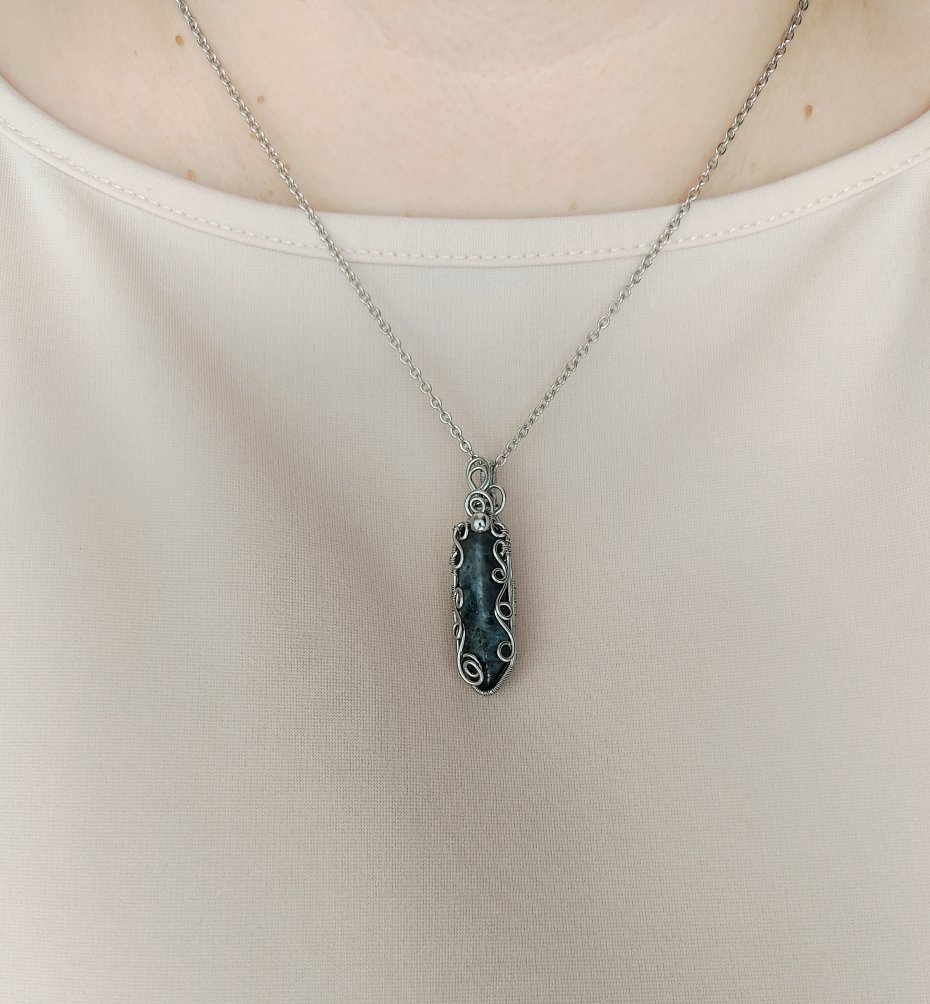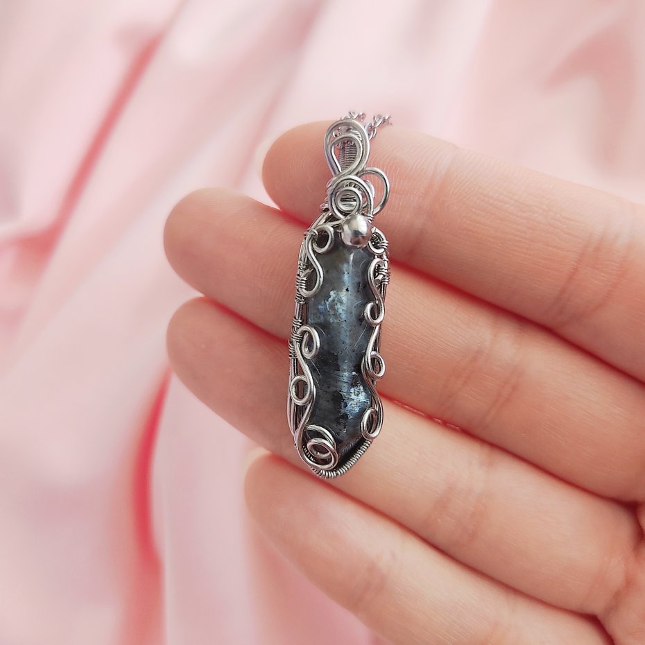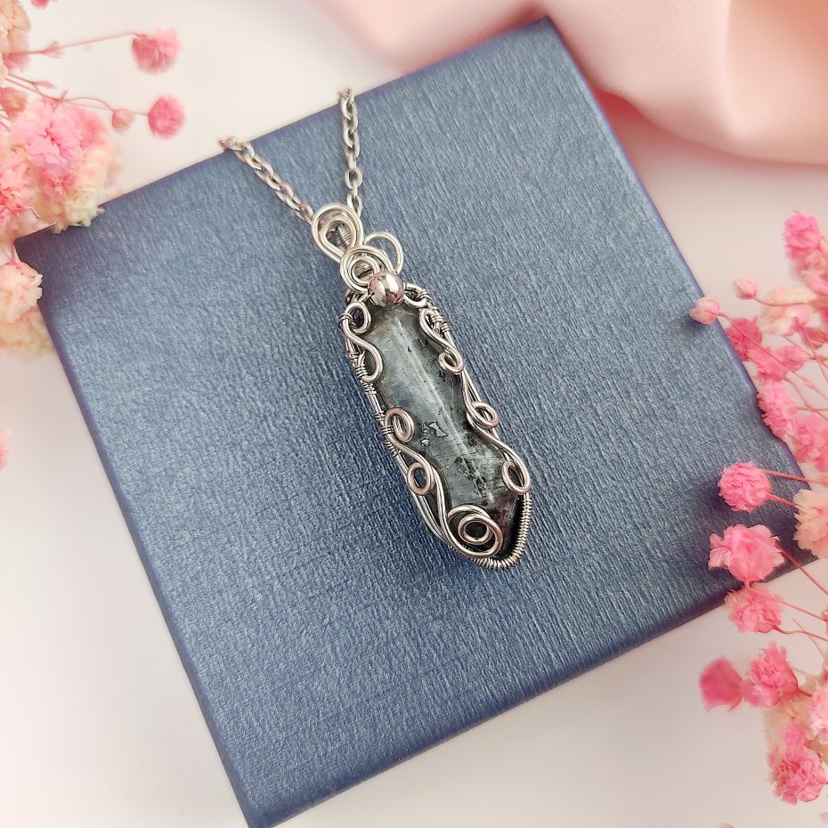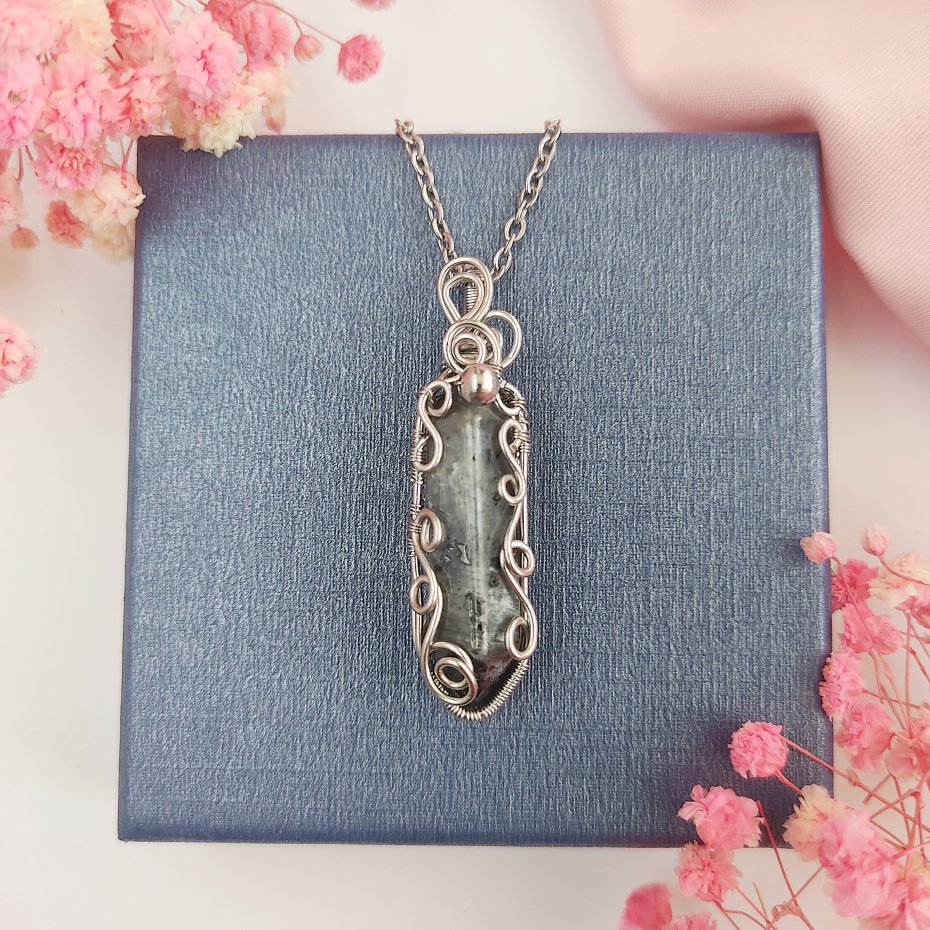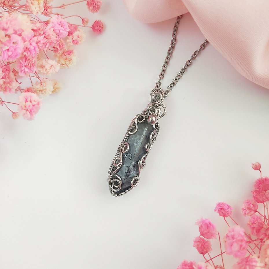 Jeżeli szukasz niepowtarzalnego akcentu do swojej kolekcji biżuterii, naszyjnik z larkivitem wykonany ze stali chirurgicznej metodą wire wrapping będzie doskonałym wyborem.