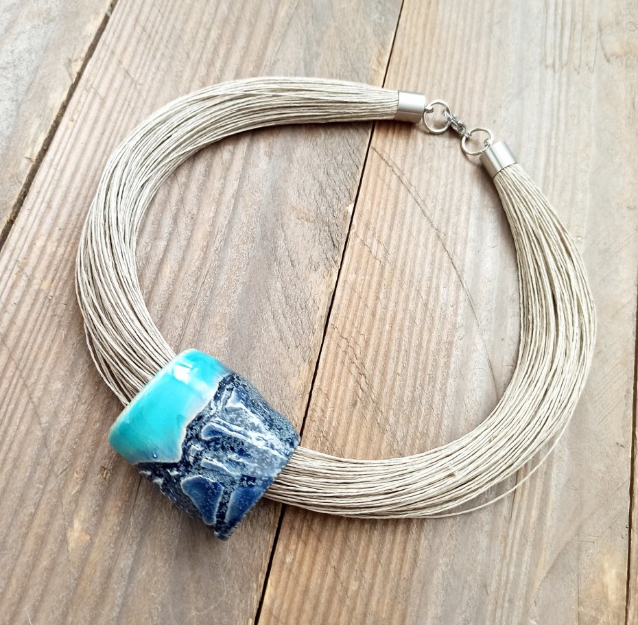 naszyjnik wykonany z wyprodukowanego w polsce, wysokogatunkowego lnu w...