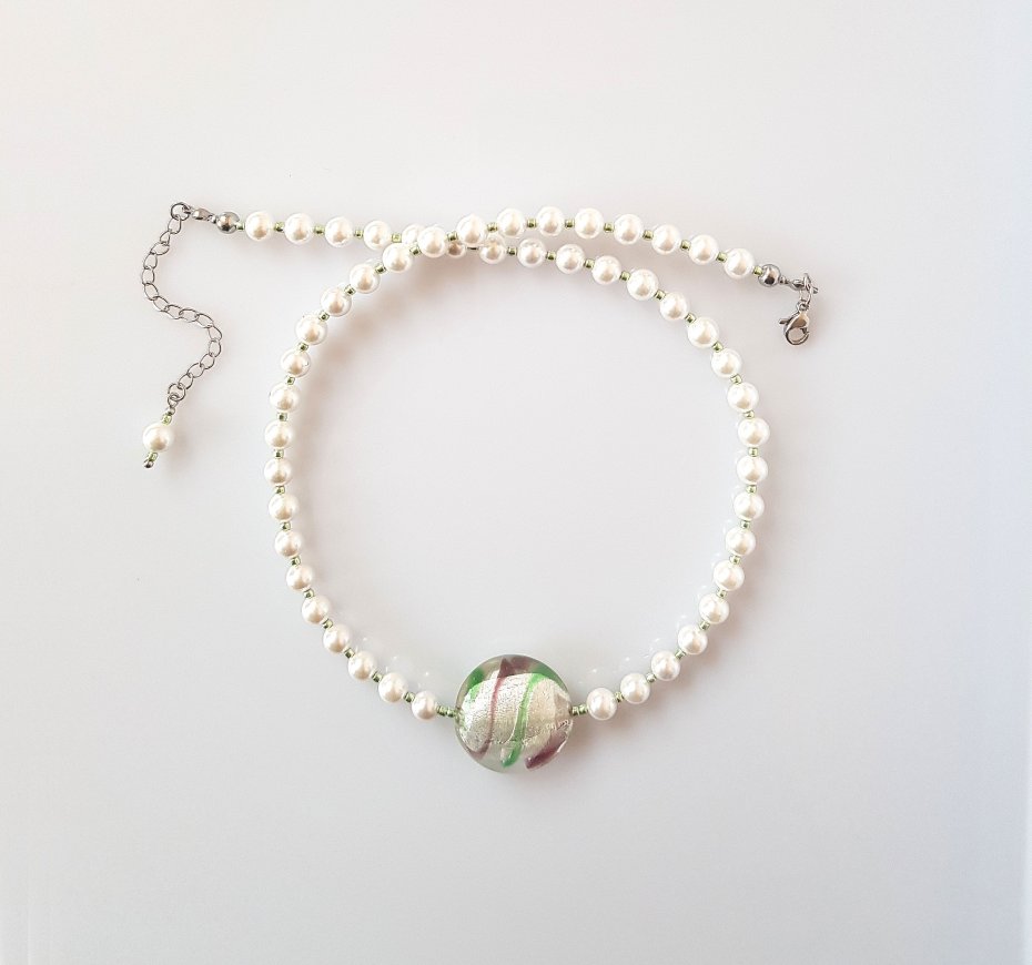 Tagi: #delikatny naszyjnik, #kobiecy naszyjnik, #szklane perły, #szkło weneckie