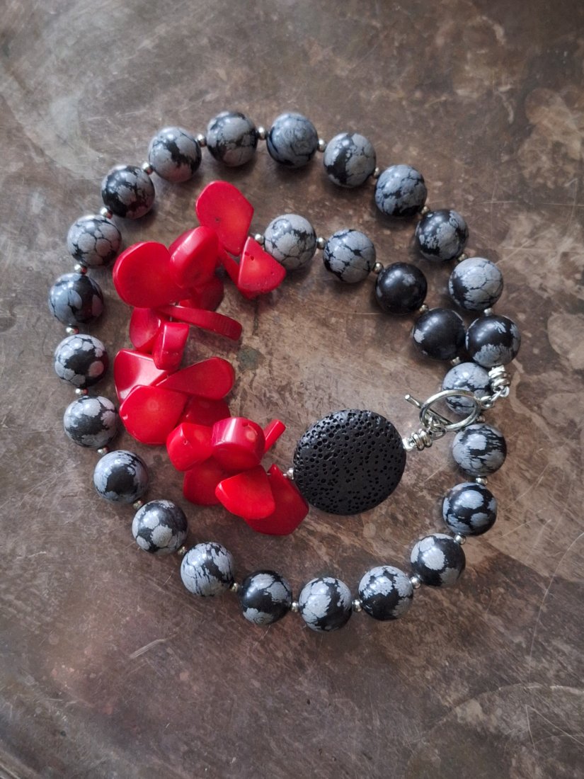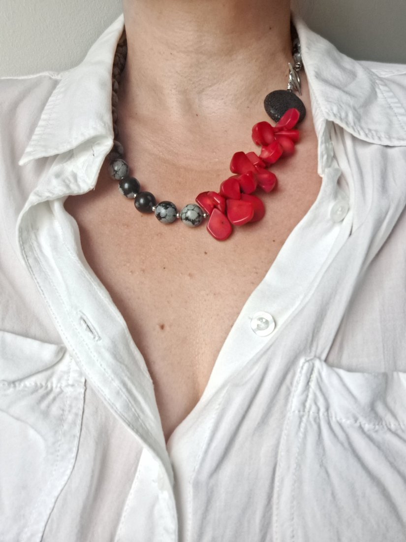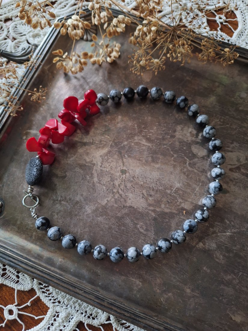 4.  > Naszyjnik obsydian śnieżny koral i lawa (nr 7097245)