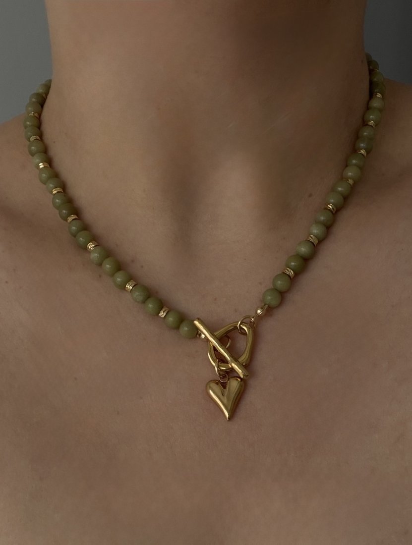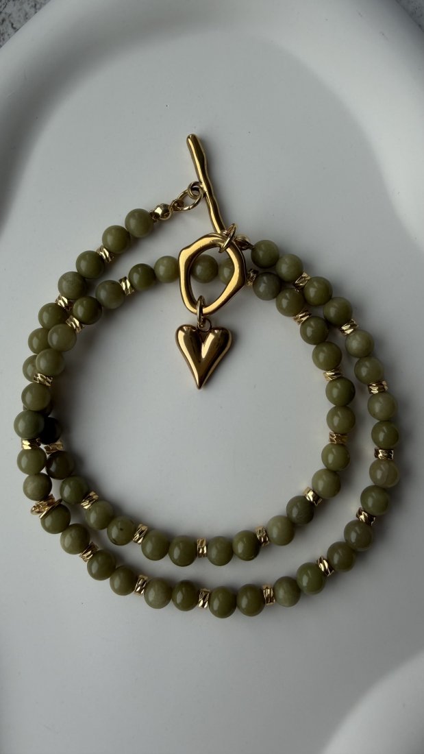 Wykwintny naszyjnik z jadeitu i stali nierdzewnej