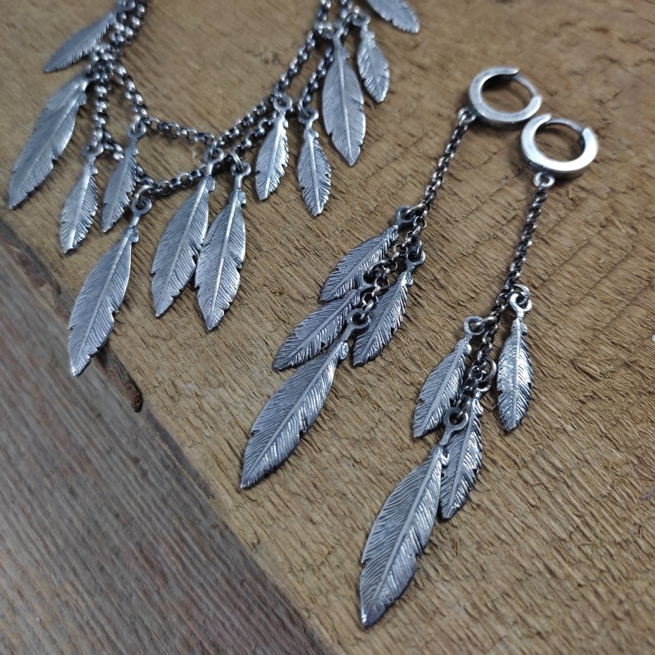 Tagi: #naszyjnik, #piórka, #srebro oksydowane