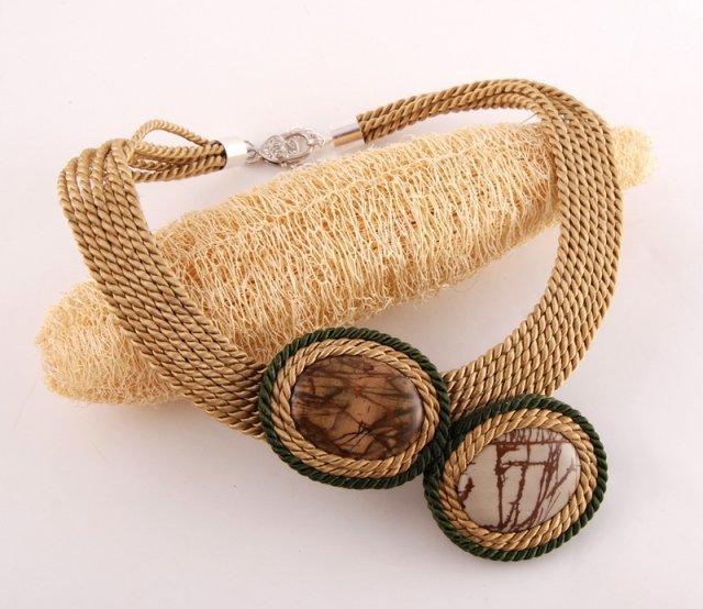 Każdy jaspis ma unikalny wzór i jest oprawiony wg mojej autorskiej technologii w zwoje sznurów satynowych w kolorach pasujących do jaspisów.