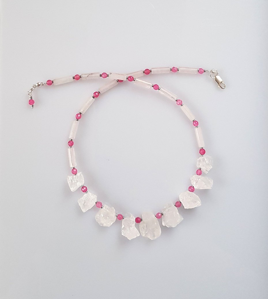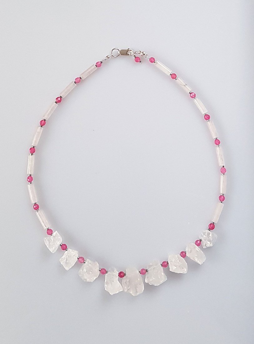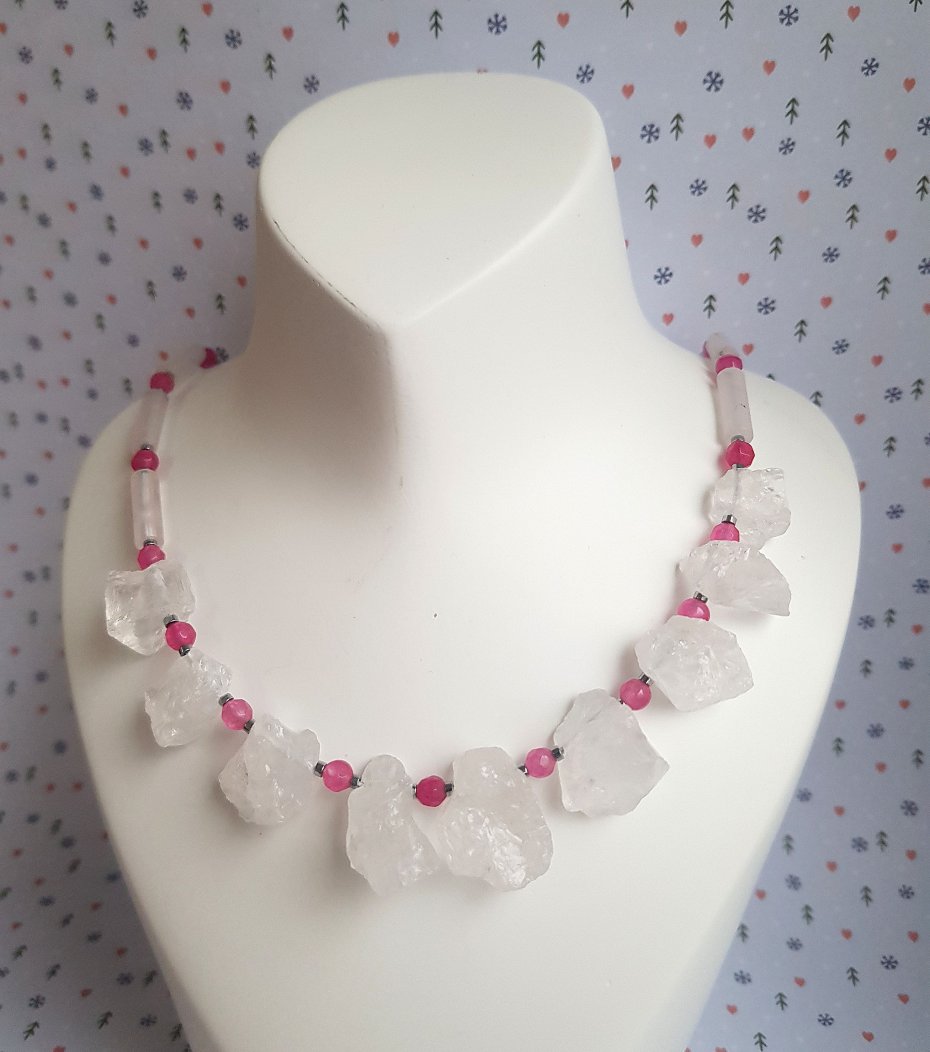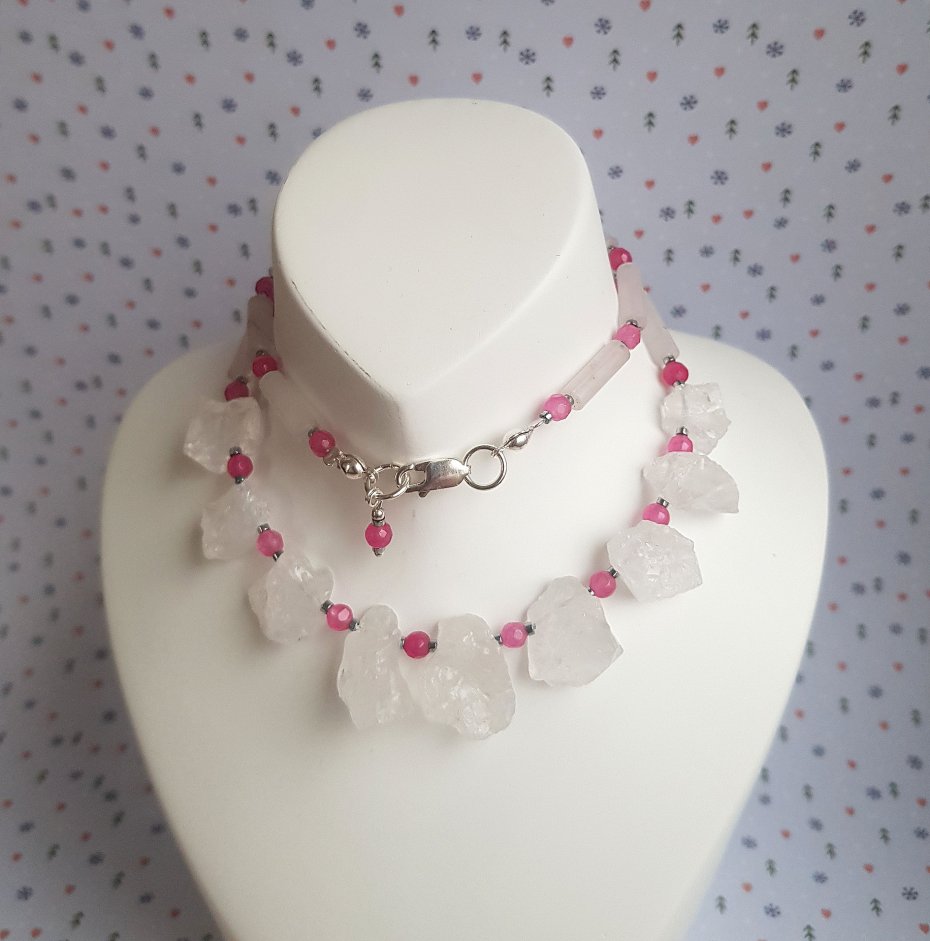 Tagi: #biżuteria autorska, #elegancki naszyjnik, #kryształ górski, #kwarc różowy