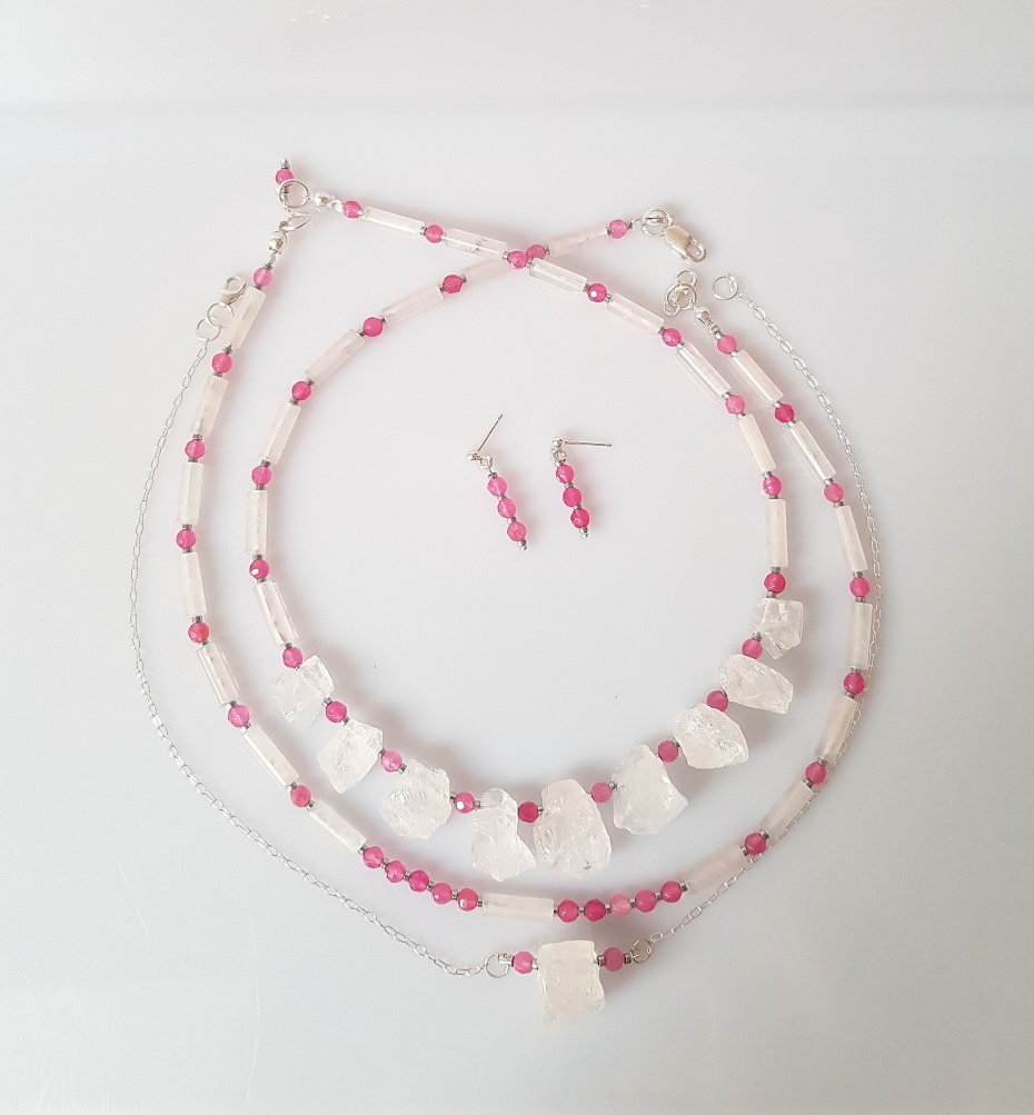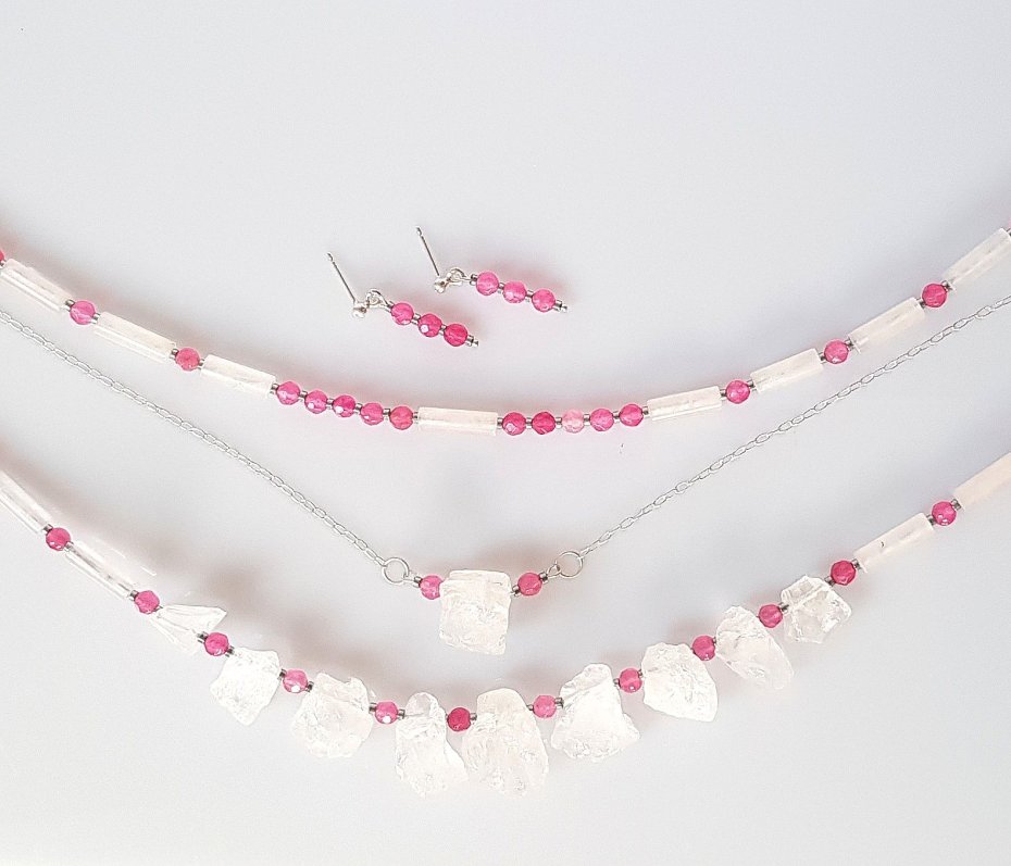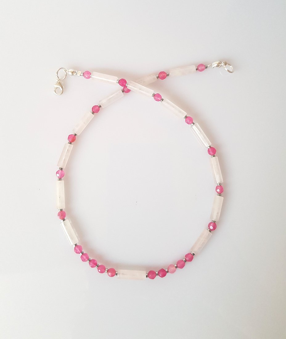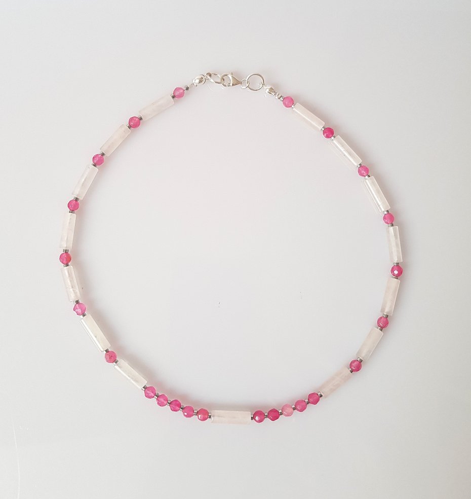 Tagi: #biżuteria autorska, #choker z kamieni naturalnych, #elegancki naszyjnik, #kwarc różowy