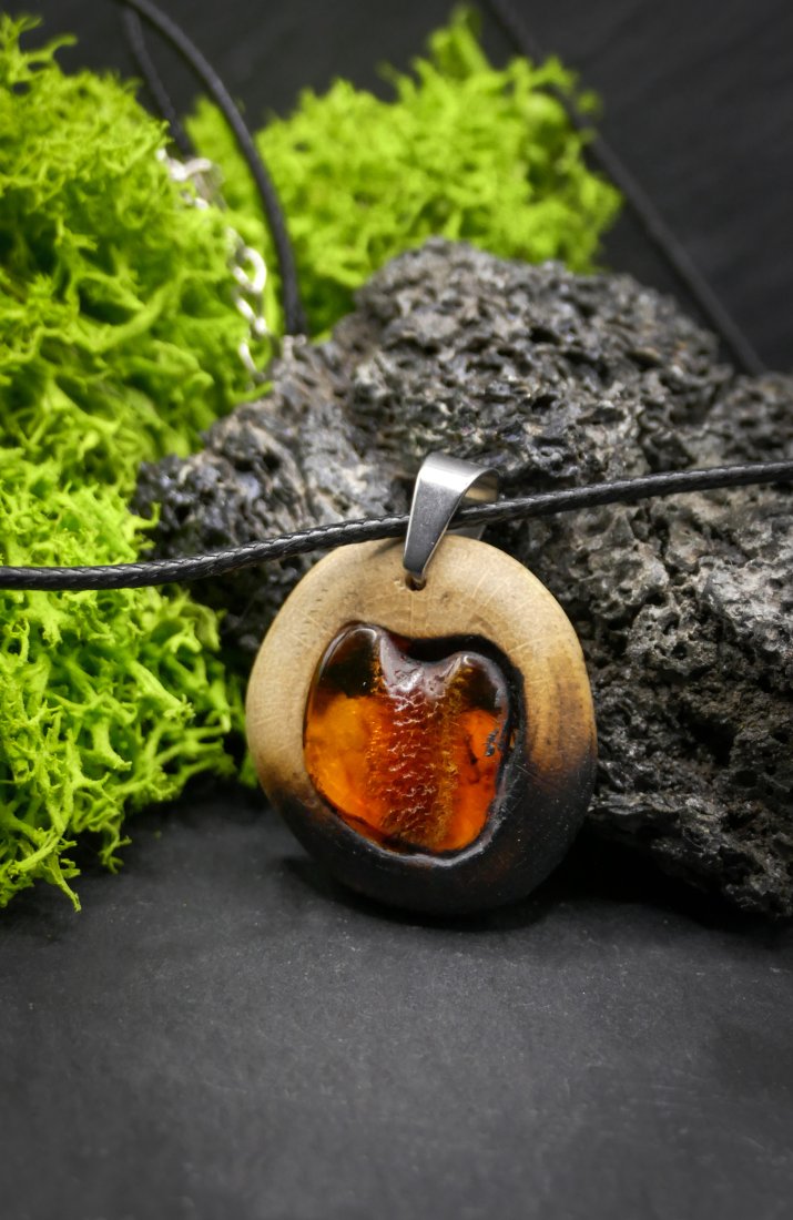 Minimalistyczny wisiorek z dębu to połączenie naturalnych materiałów i nowoczesnego designu. Dąb został pięknie wyszlifowany, woskowany i wypolerowany na gładko, a głębokie opalenie nadało mu unikalną strukturę.