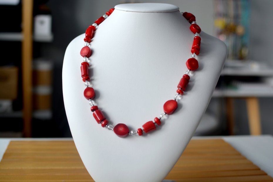 Tagi: #klasyczny, #koral, #kryształ górski, #naszyjnik z kamieni