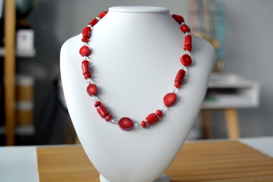 Tagi: #klasyczny, #koral, #kryształ górski, #naszyjnik z kamieni