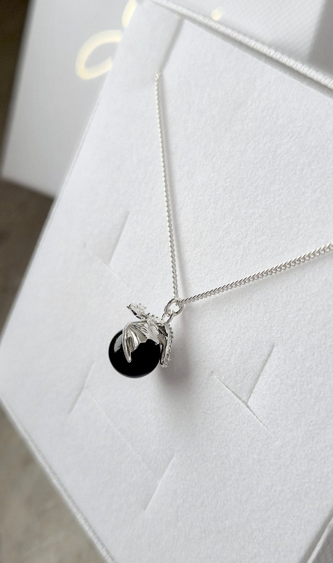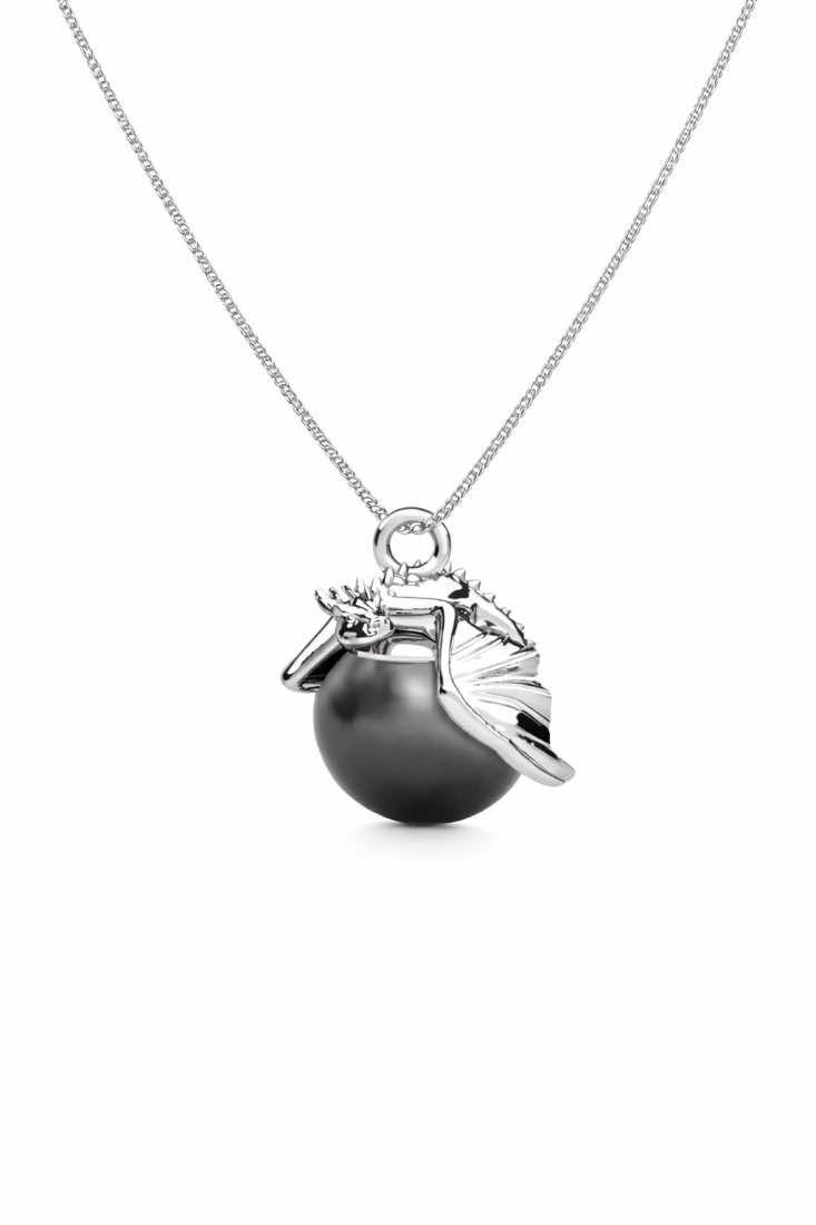 Naszyjnik wykonany ze srebra próby 925 ozdobiony czarną perłą muszlową o średnicy 8mm.
