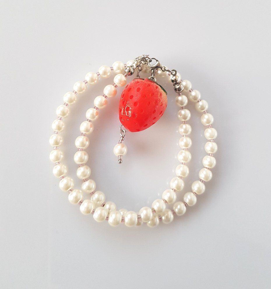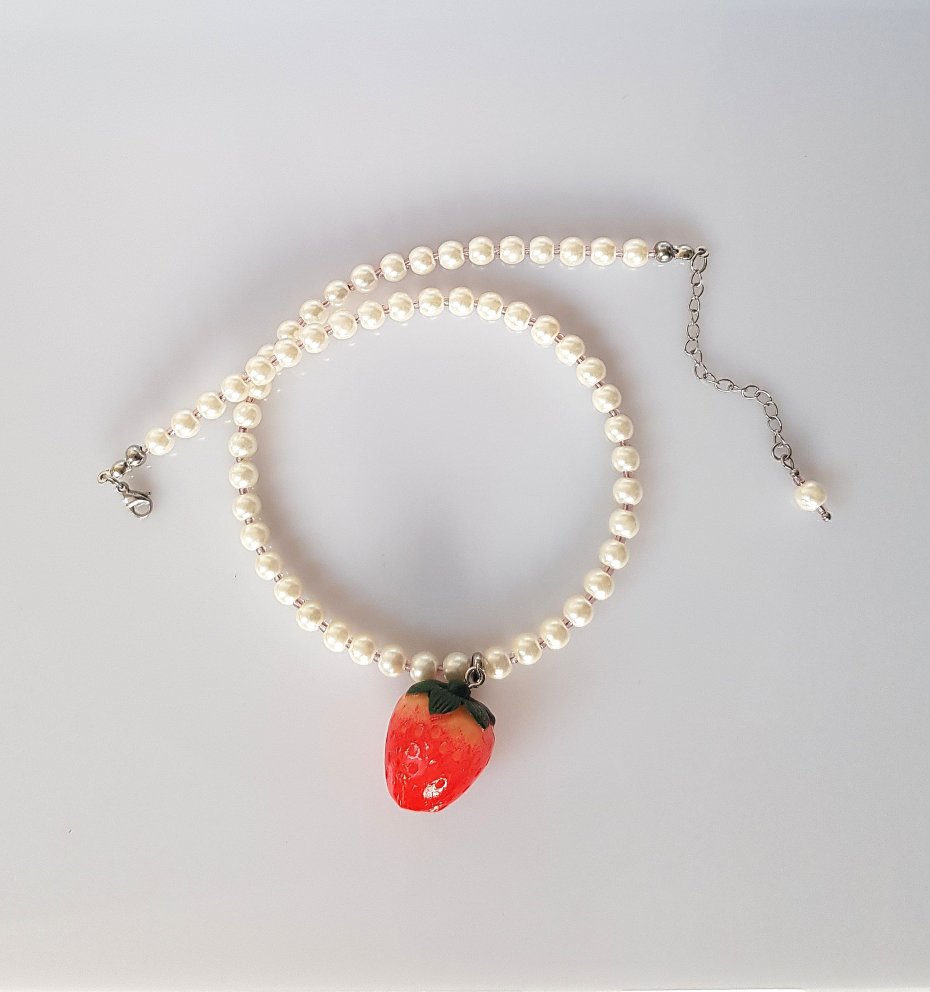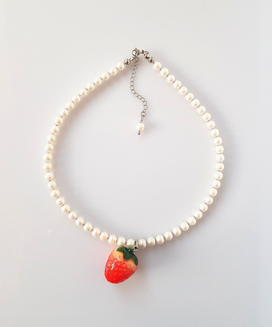 Tagi: #choker z zawieszkami, #delikatny naszyjnik, #szklane perły, #truskawka