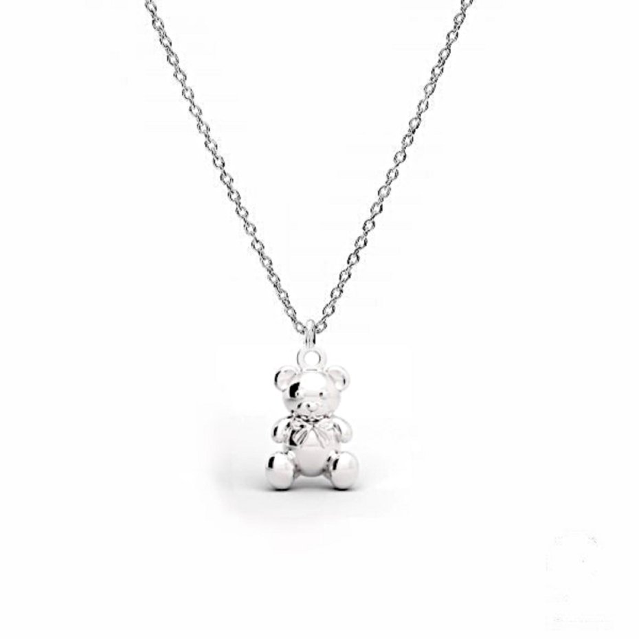 Naszyjnik z zawieszką w kształcie misia. Wykonany ze srebra pr.925. Zabezpieczony dodatkowo warstwą ochronną anti-tarnish, zabezpieczającą przed ścieraniem i ciemnieniem.