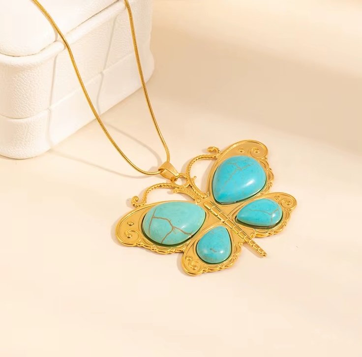N3041 Naszyjnik z zawieszką z niebieskim motylem.
